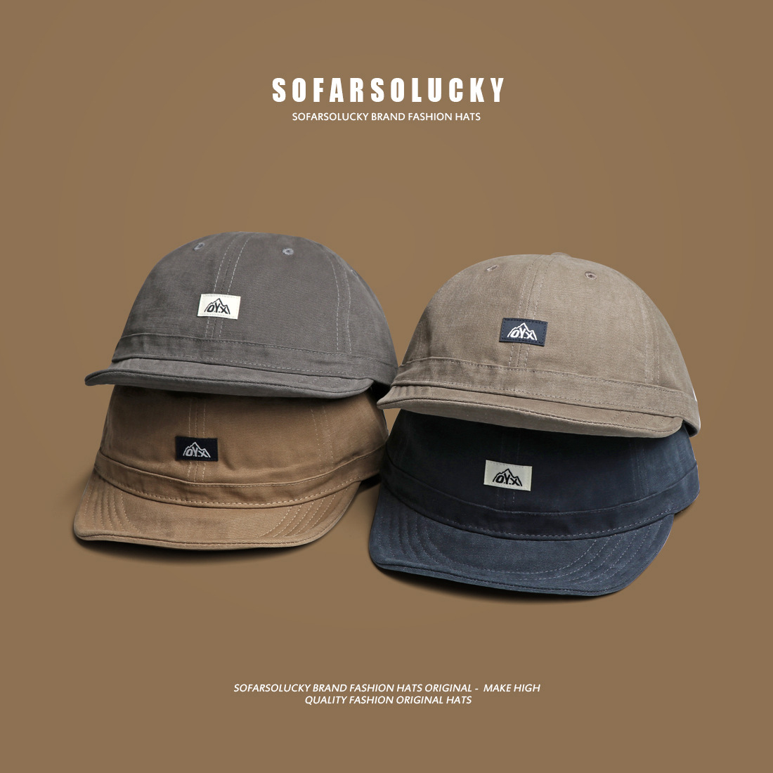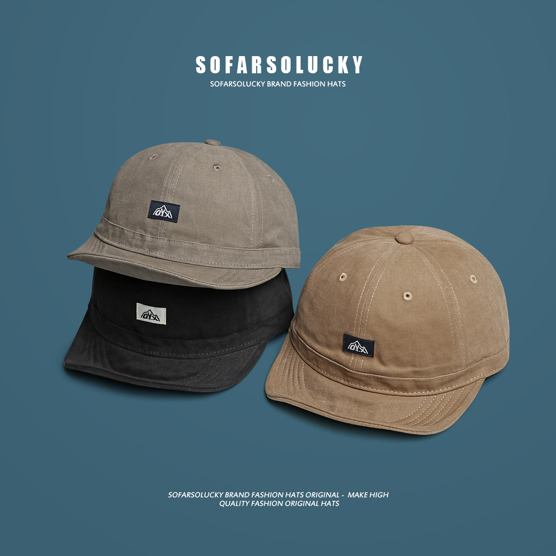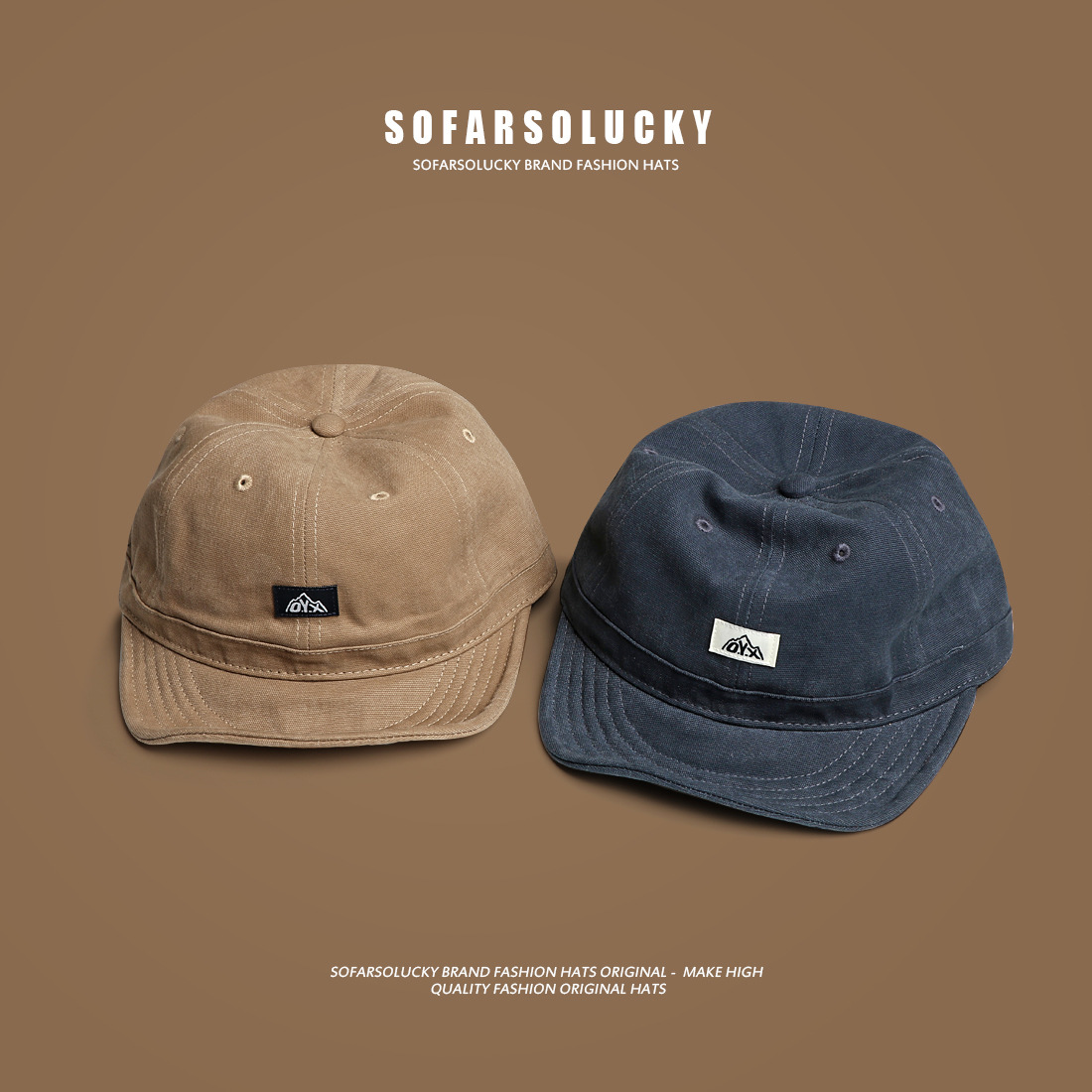 日系复古软檐鸭舌帽男士工装风美式短檐棒球帽休闲街头港风帽子潮