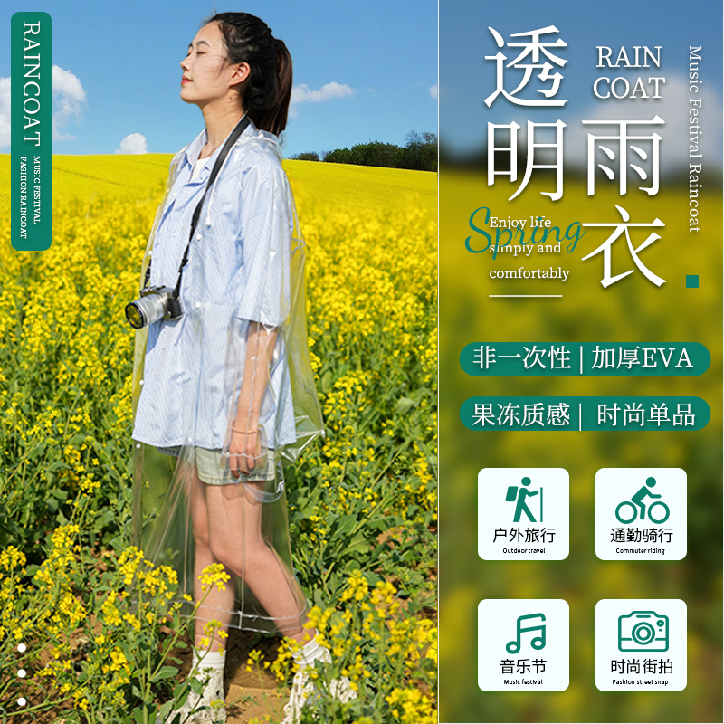 旅行音乐节透明雨衣女演唱会成人外穿徒步长款全身防暴雨单人雨披
