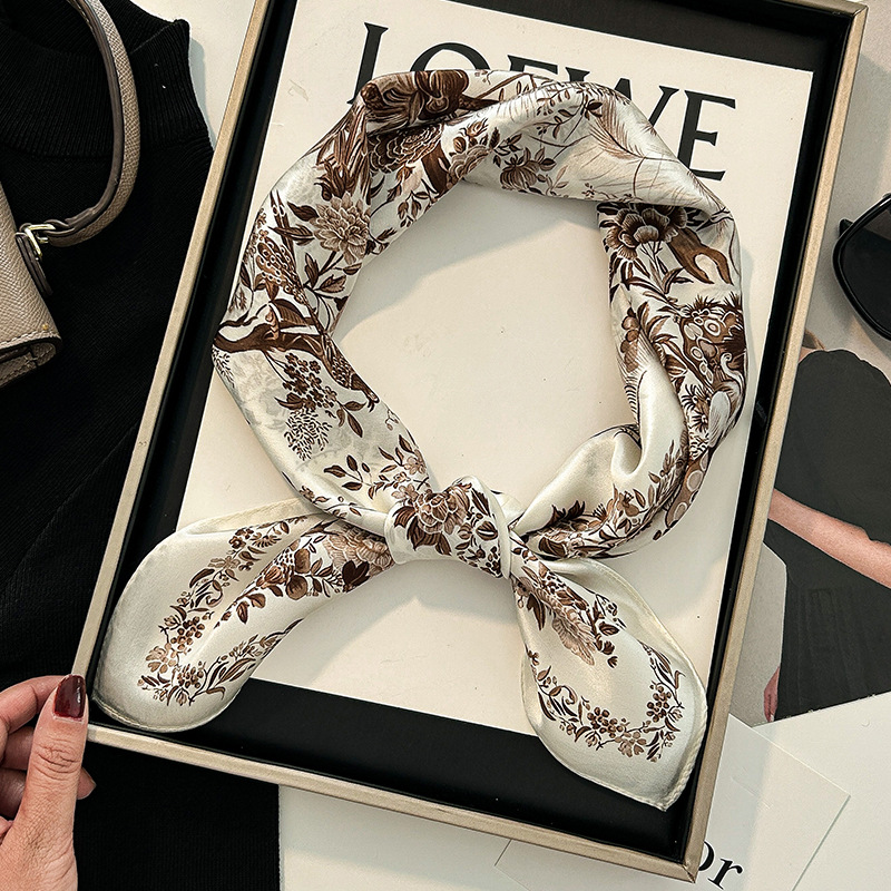 春季新款小碎花真丝方巾韩版小清新田园风森系桑蚕丝真丝丝巾