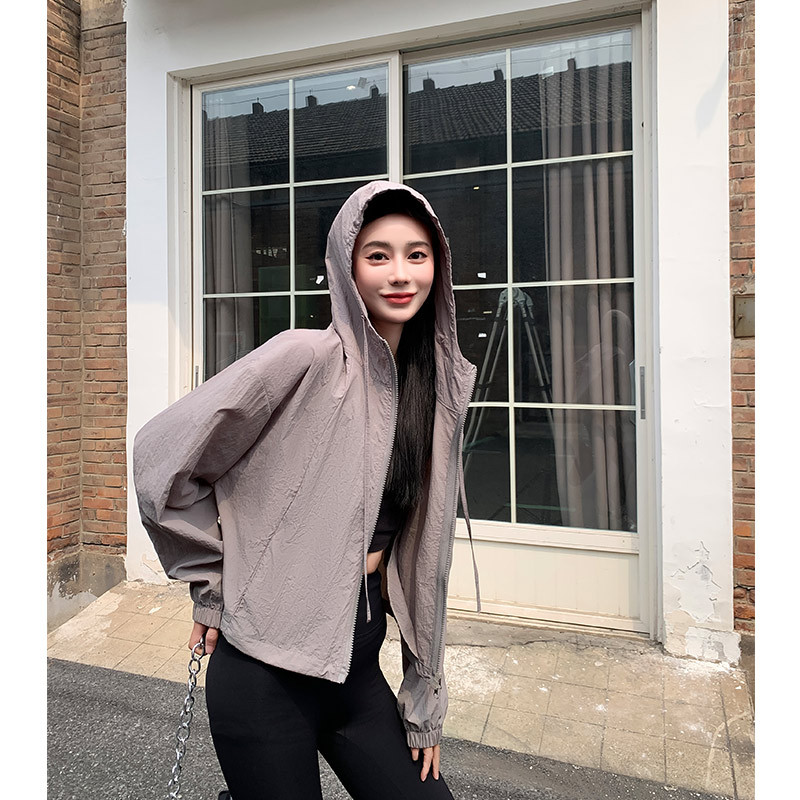 防晒连帽开衫女短外套春夏百搭宽松上衣轻薄拉链长袖冲锋衣