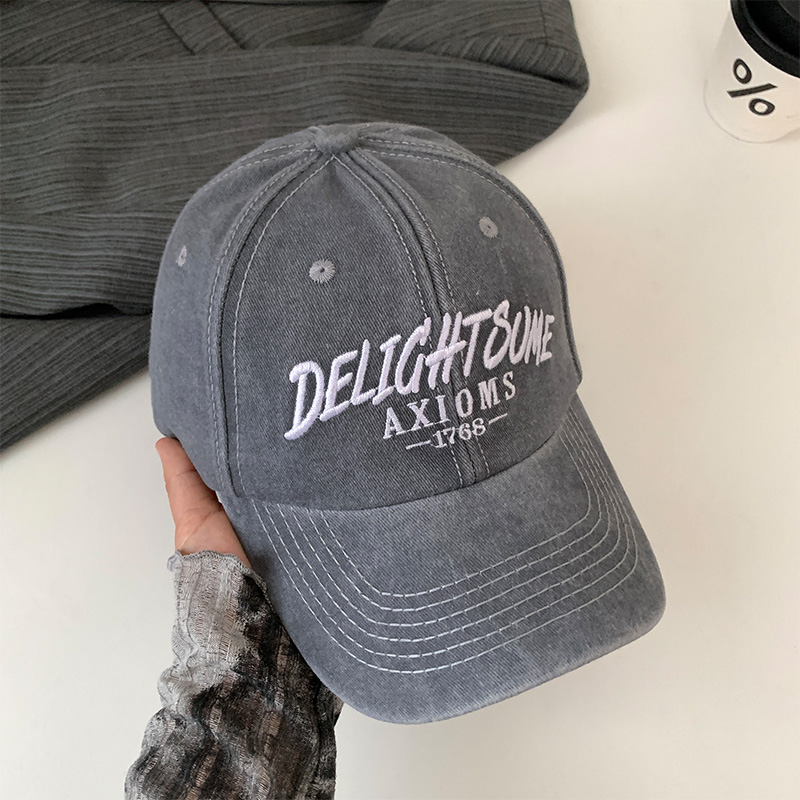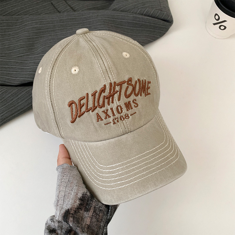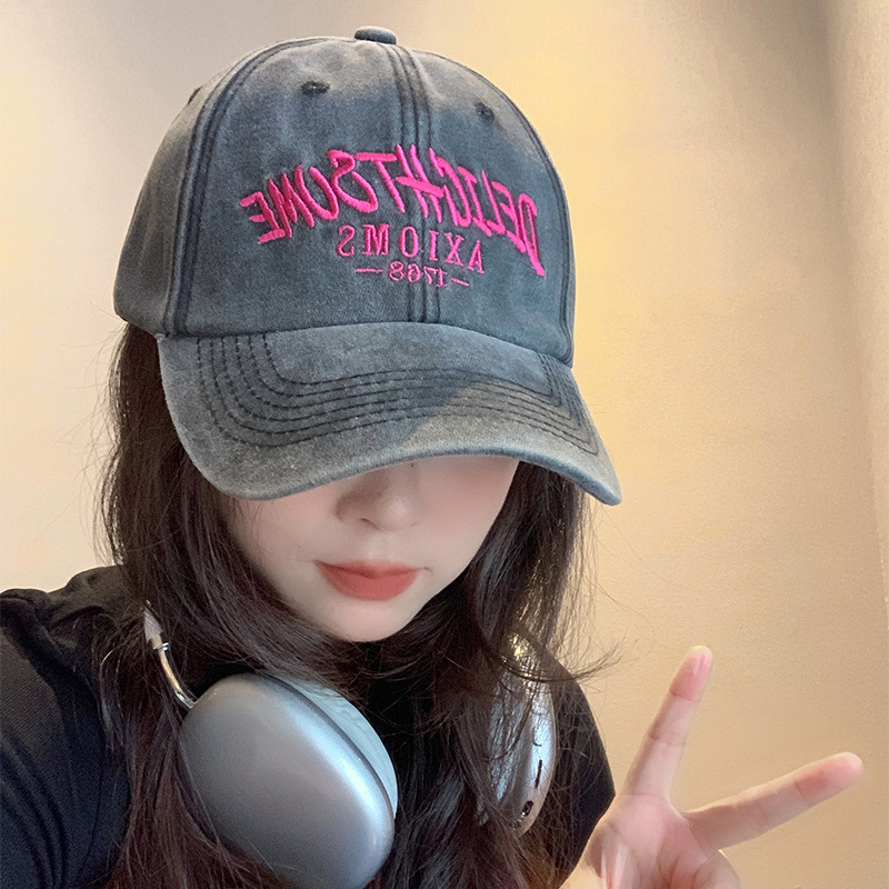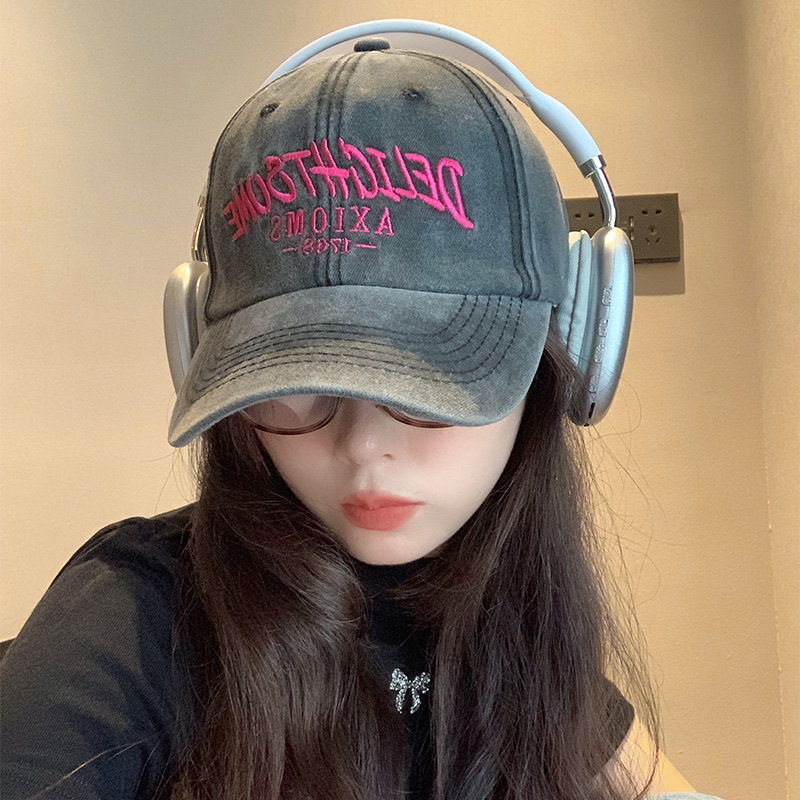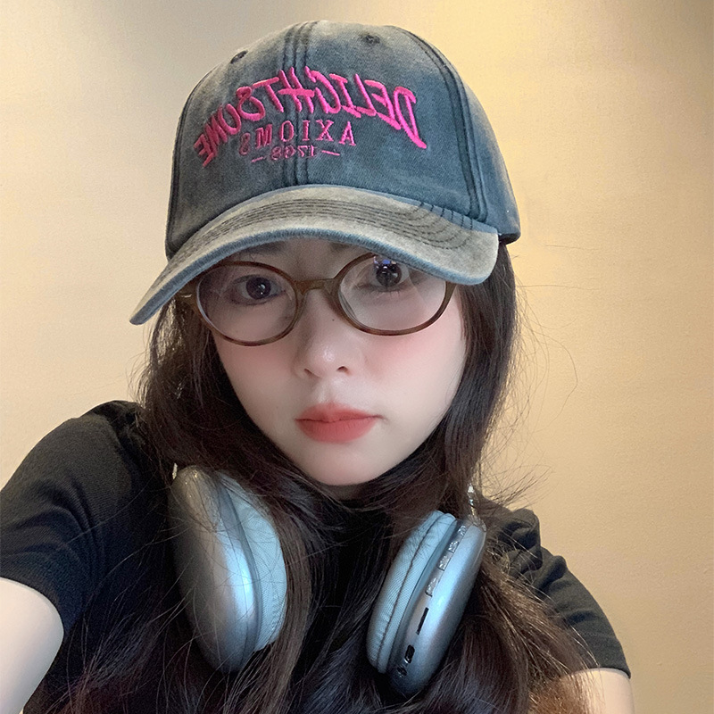 美式复古水洗做旧棒球帽女新款大头围显脸小宽檐软顶棒球帽子