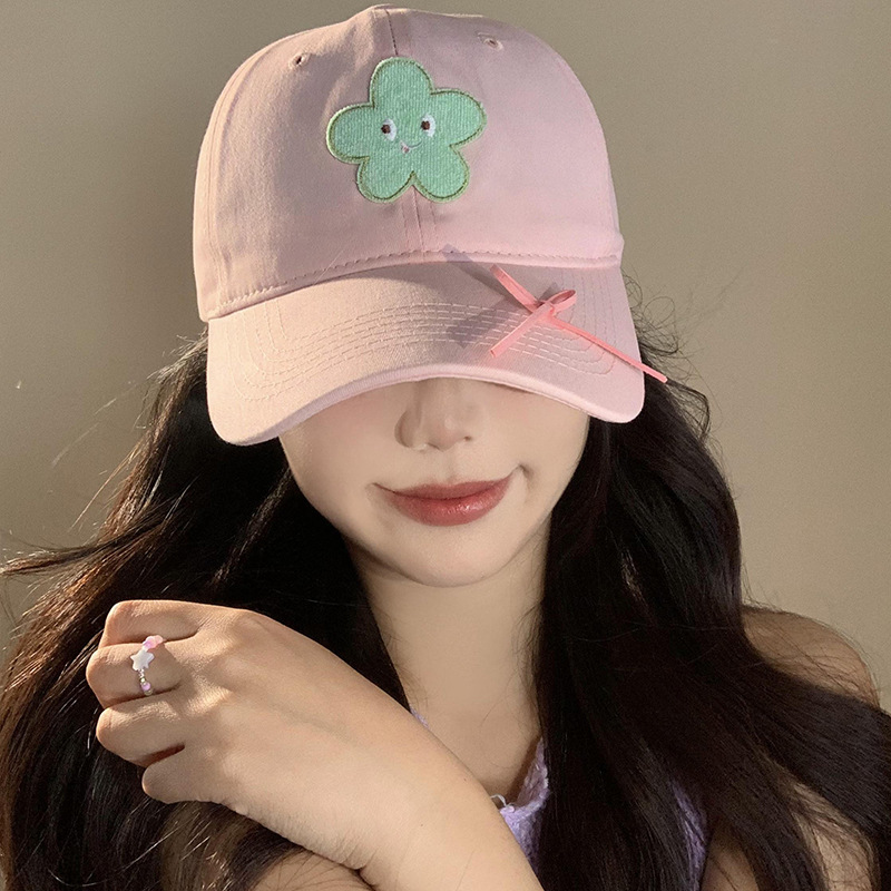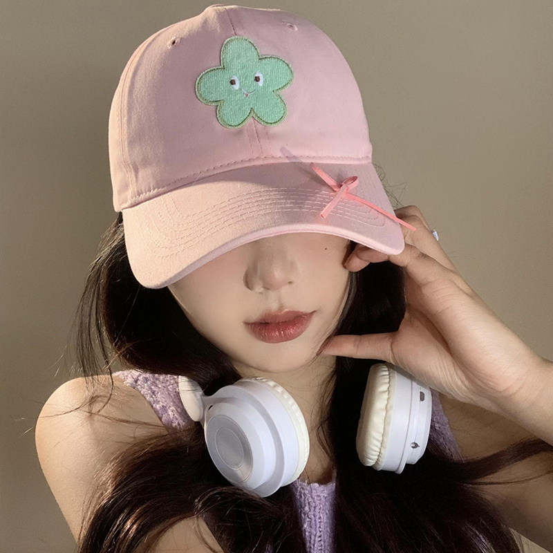 可爱搞怪蝴蝶结棒球帽女大头围显脸小鸭舌帽宽帽檐粉色软顶帽子潮