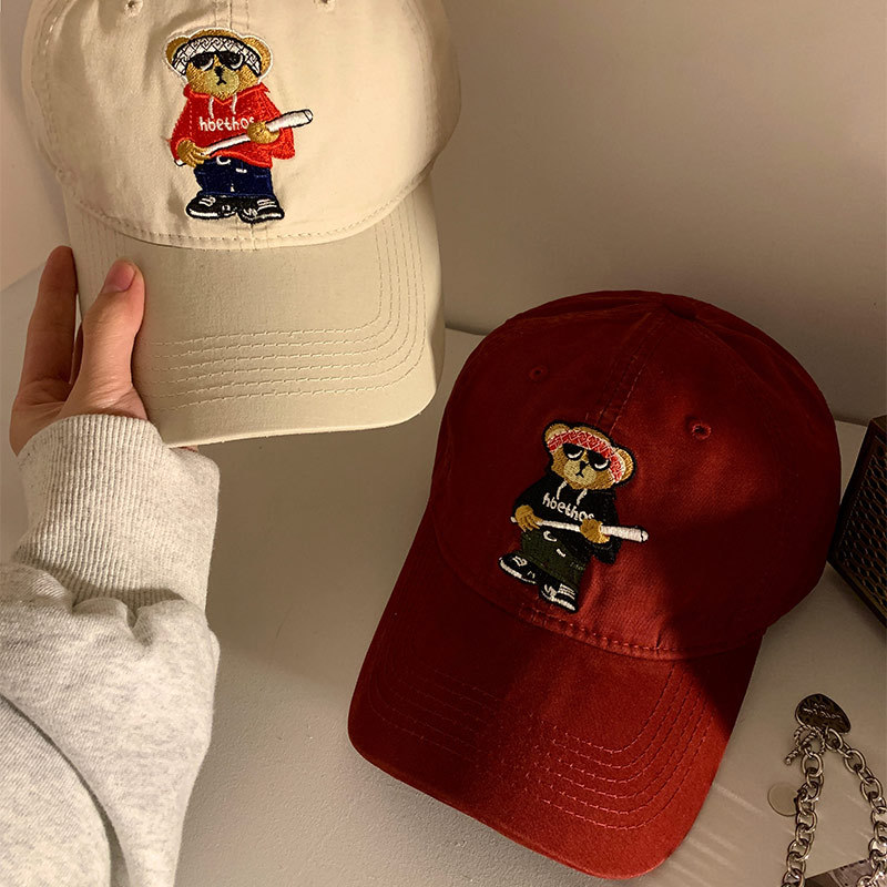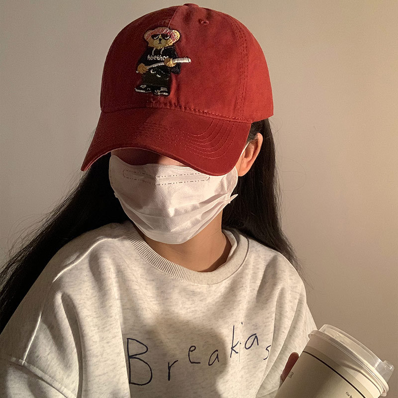 小熊软顶棒球帽子女春夏ins百搭宽帽檐显脸小学生防晒遮阳鸭舌帽