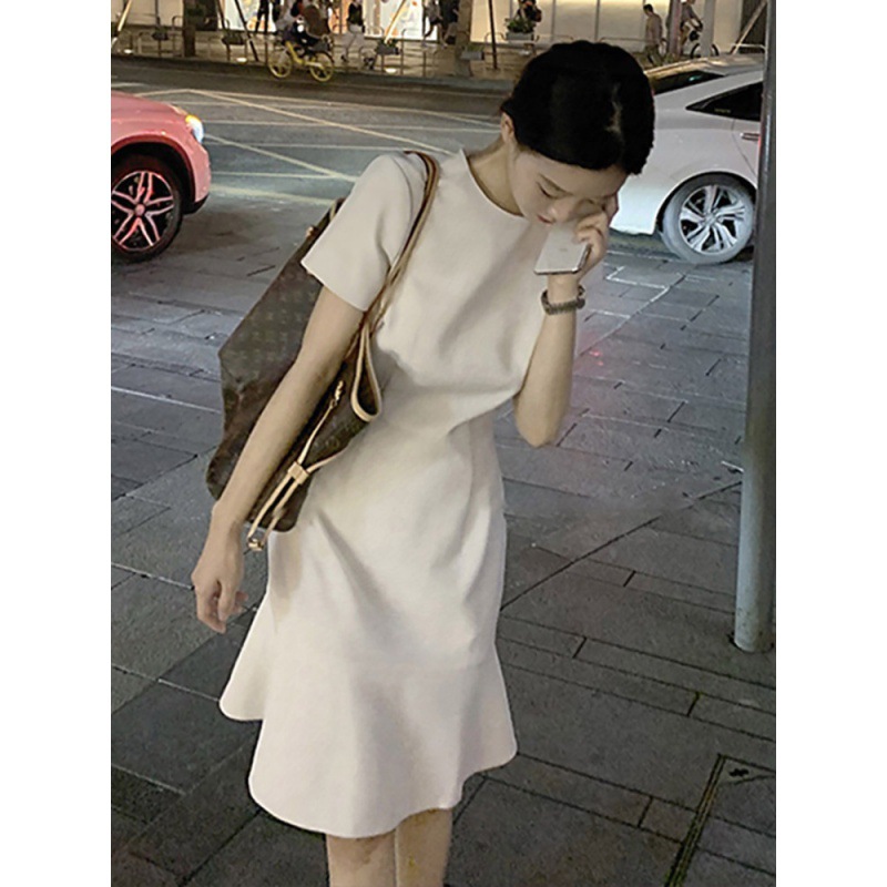夏装新款女装法式复古时尚圆领荷叶边裙子气质显瘦白色连衣裙