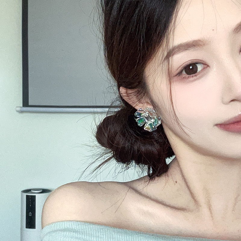 几何幻彩花朵耳钉女小清新个性甜美耳饰新款百搭气质耳环潮