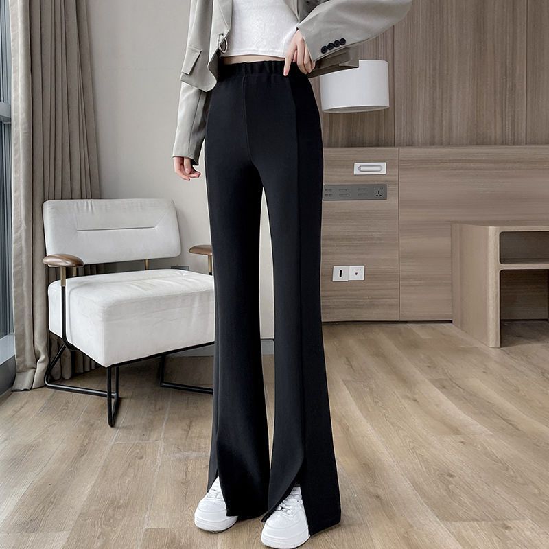 微喇叭女士裤子前开叉春夏时尚高腰宽松垂坠感休闲阔腿拖地裤