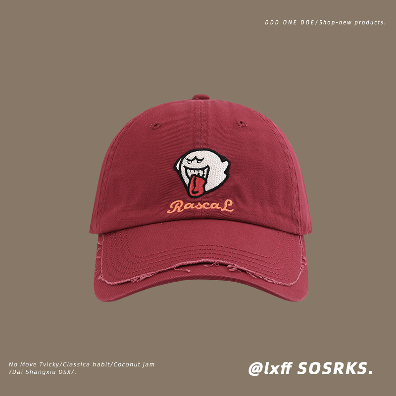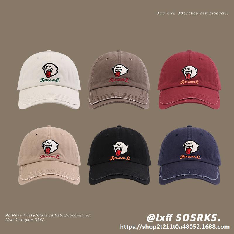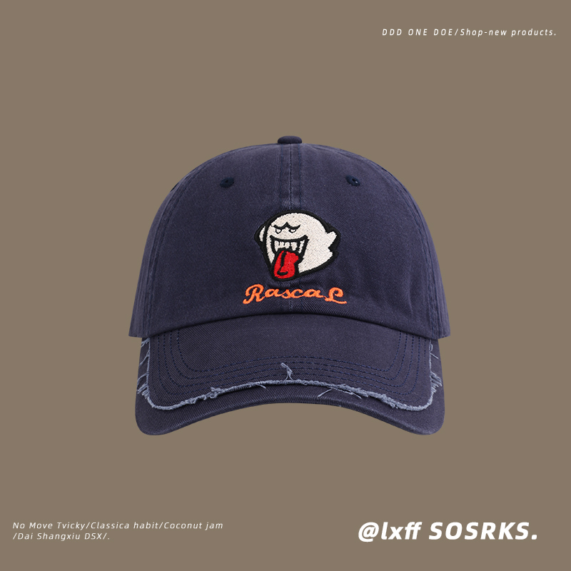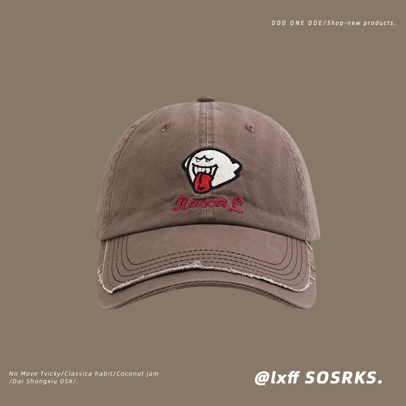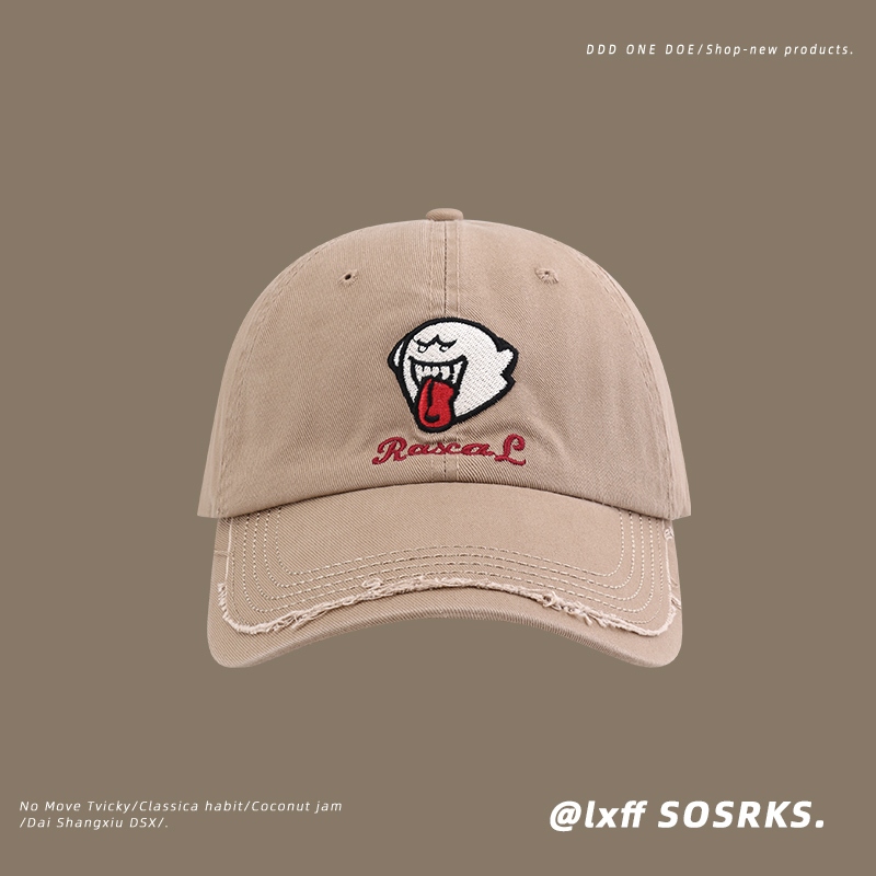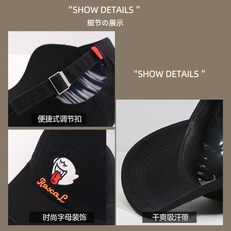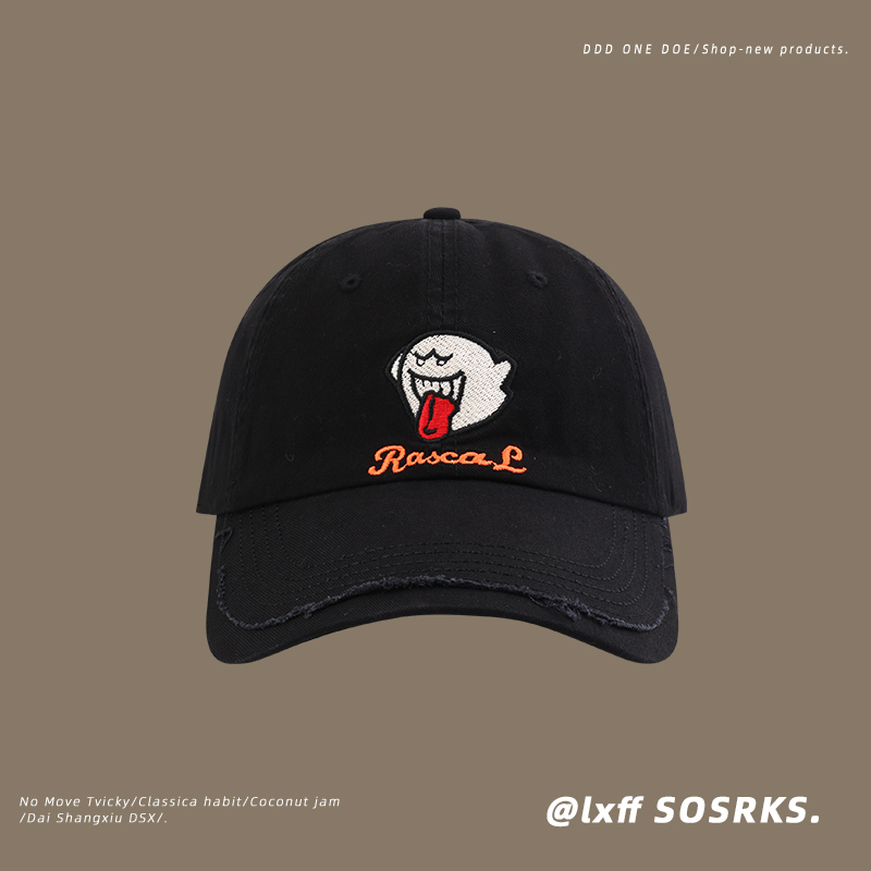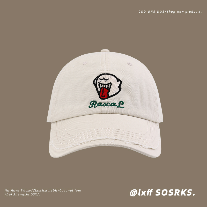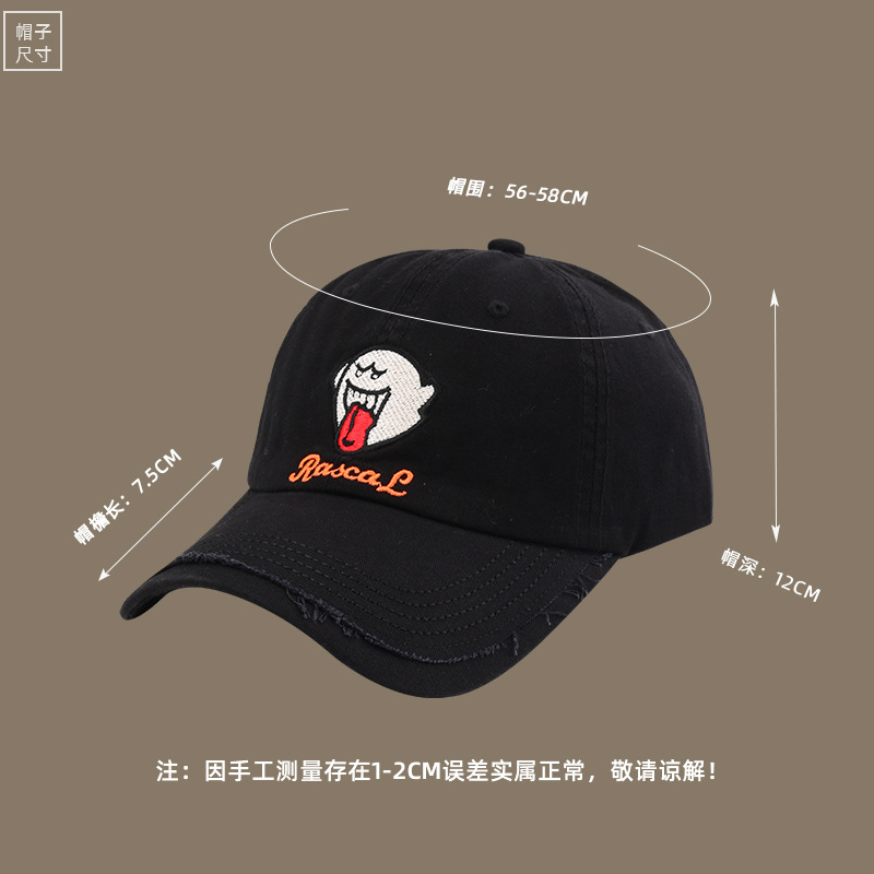 帽子女韩版百搭搞怪刺绣图案鸭舌帽时尚宽檐遮阳显脸小棒球帽子男