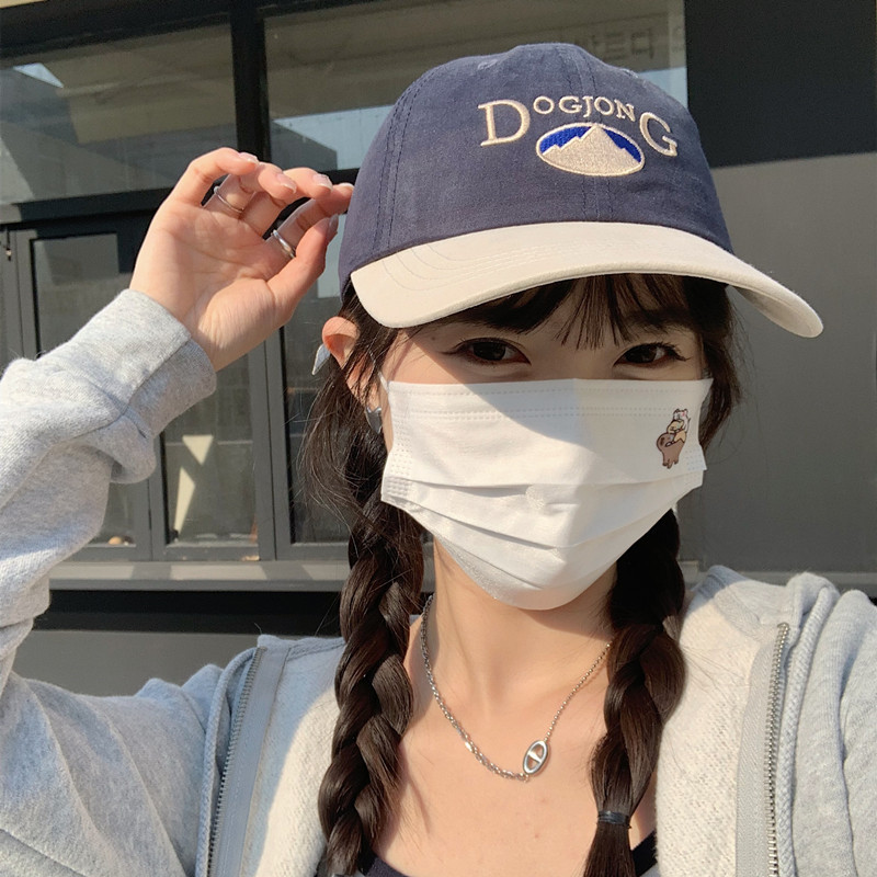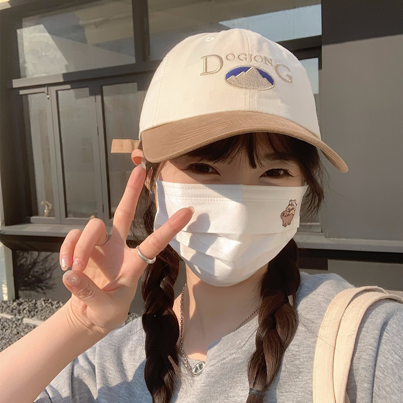 新款韩版拼色刺绣软顶棒球帽春夏宽帽檐显脸小遮阳鸭舌帽子女