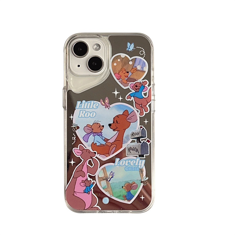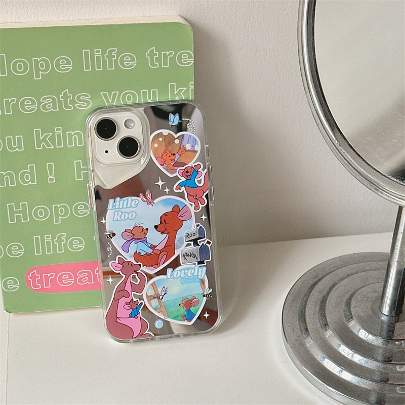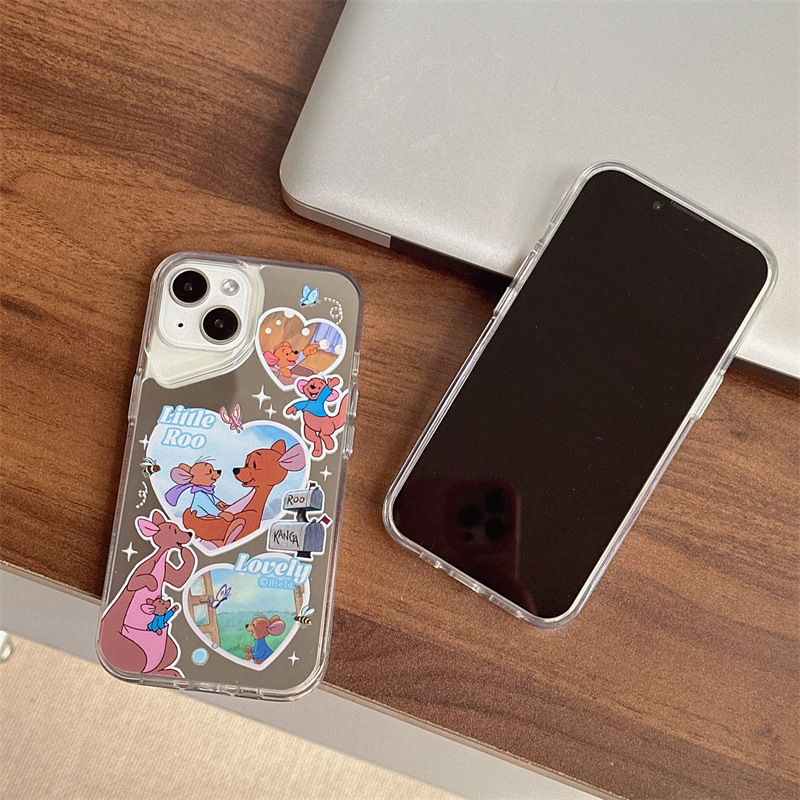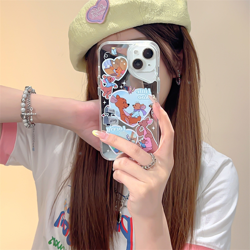爱心袋鼠小动物适用iphone15promax镜面新款14pro手机壳13趣味12