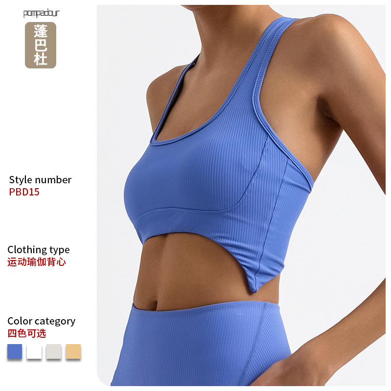 瑜伽背心女 条纹含胸垫防震美背不规则运动健身吊带bra
