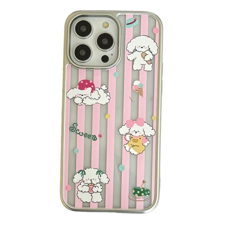 粉色条纹小狗适用iphone15promax电镀亚克力14pro手机壳13趣味12
