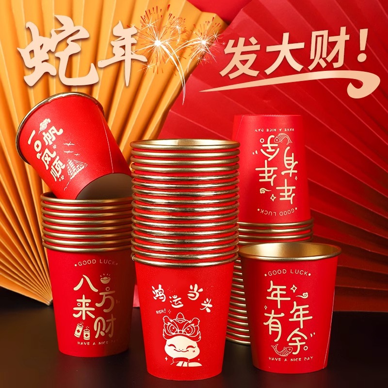 2025新款蛇年纸杯过年家用加厚一次性包装水杯茶杯