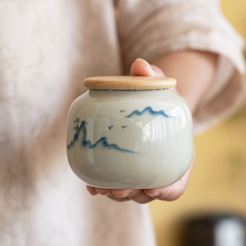 茶叶罐手绘山松小号茶仓陶瓷家用防潮密封罐储茶罐密封罐子