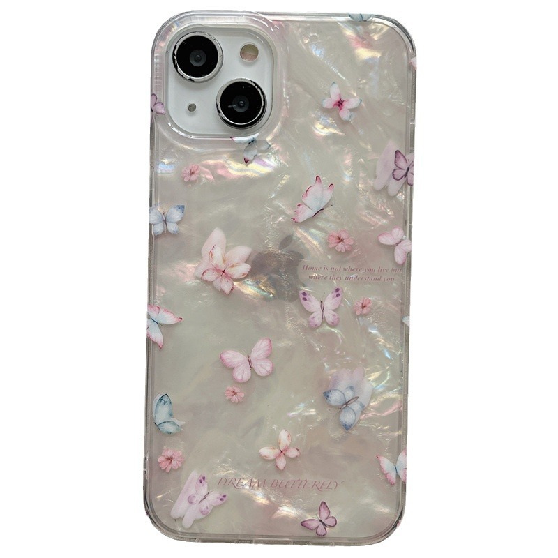 贝壳纹蝴蝶适用iphone15promax小众新款14pro手机壳13高级12少女
