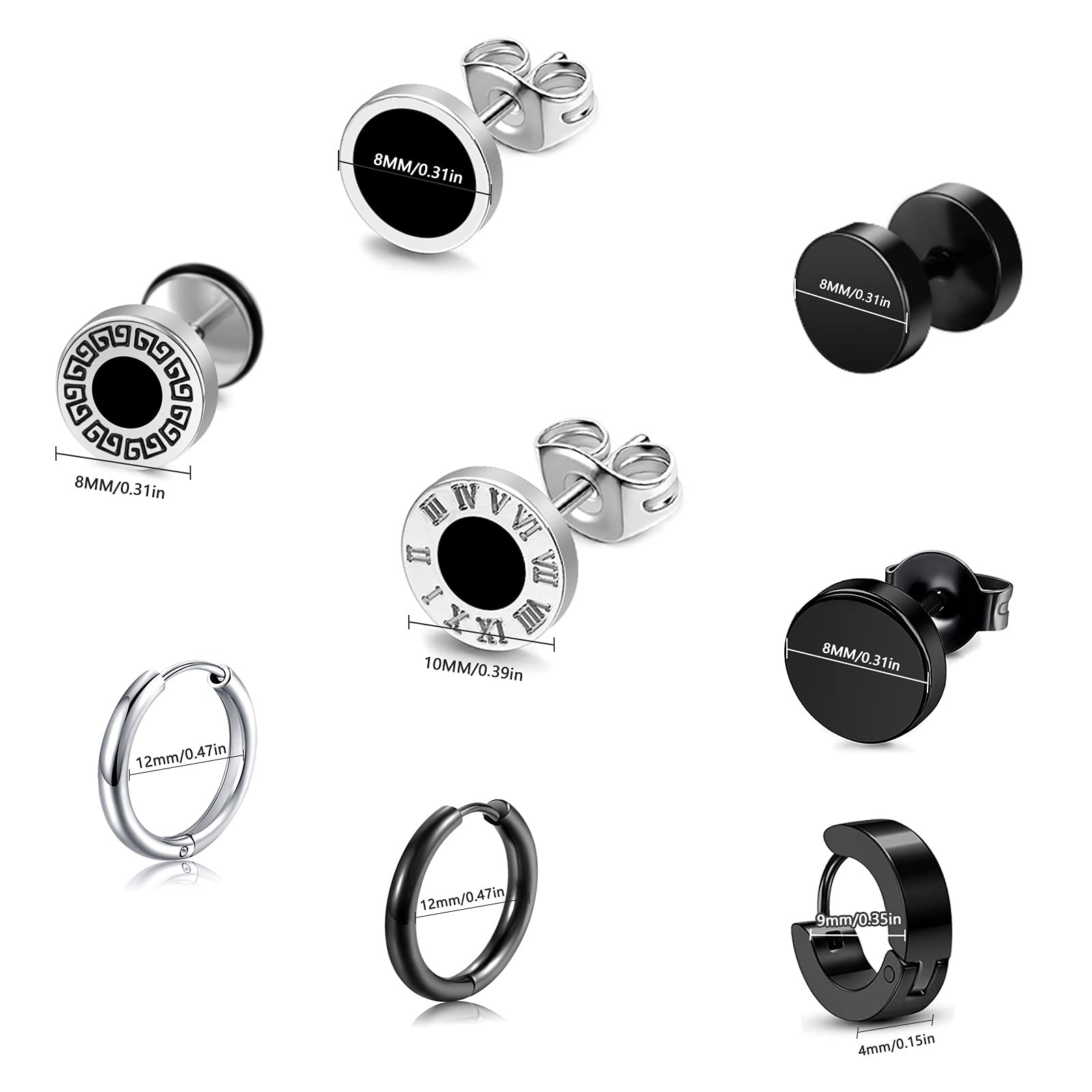 不锈钢耳钉套装亚马逊男士耳环个性哑铃黑色耳圈跨境热卖套装