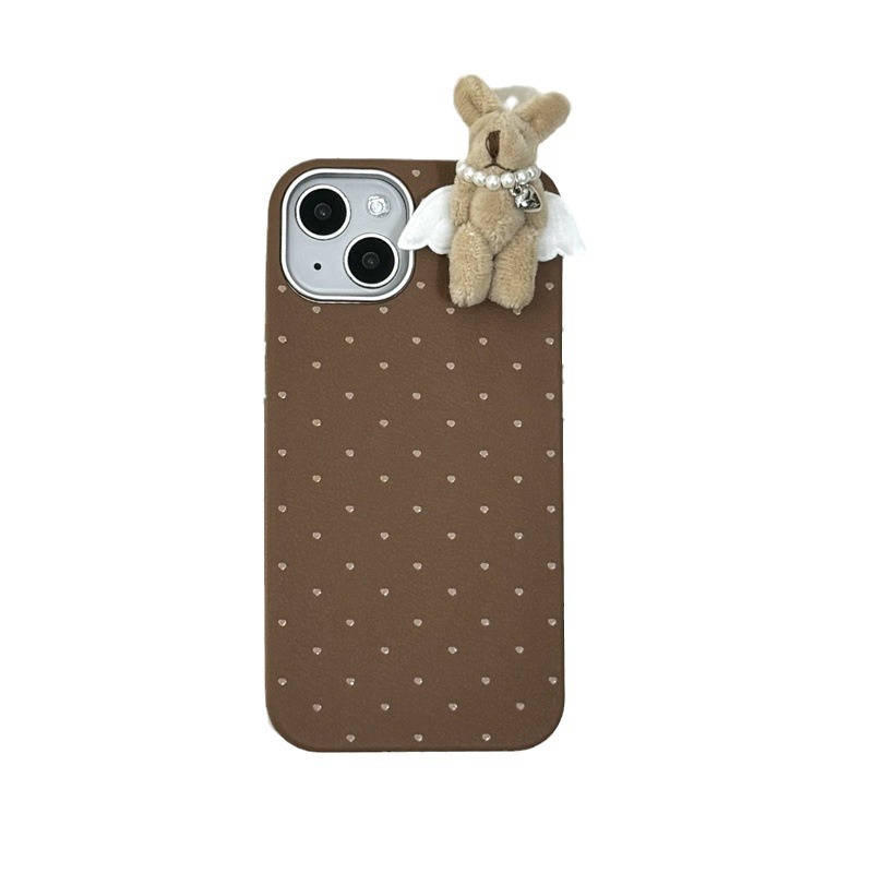 满屏爱心立体小熊适用iPhone16promax苹果15手机壳14保护套13皮纹