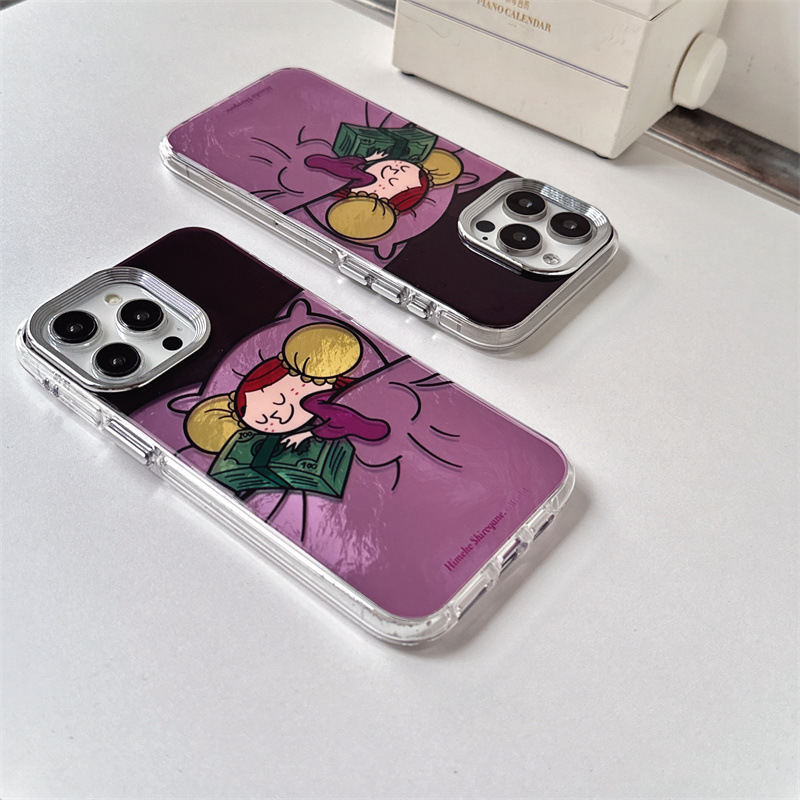 紫底小公主抱枕适用iPhone16promax苹果15新手机壳14保护套13双层
