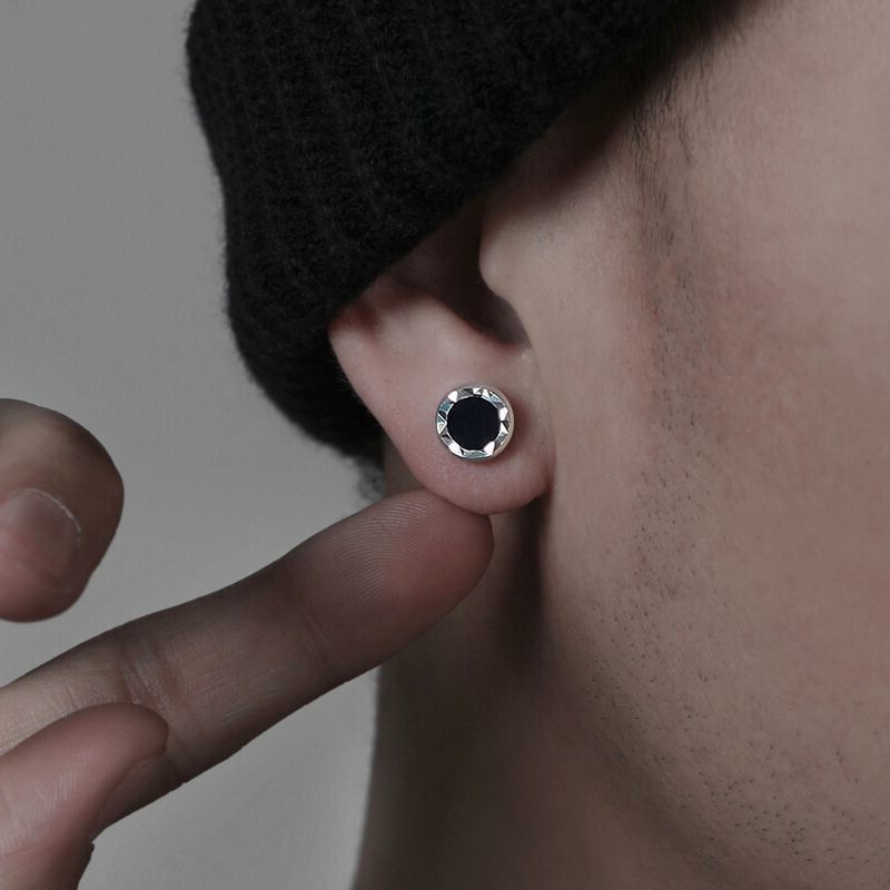 男士耳钉银精致男感冷淡风小众设计感耳环复古气质简约耳饰独立站