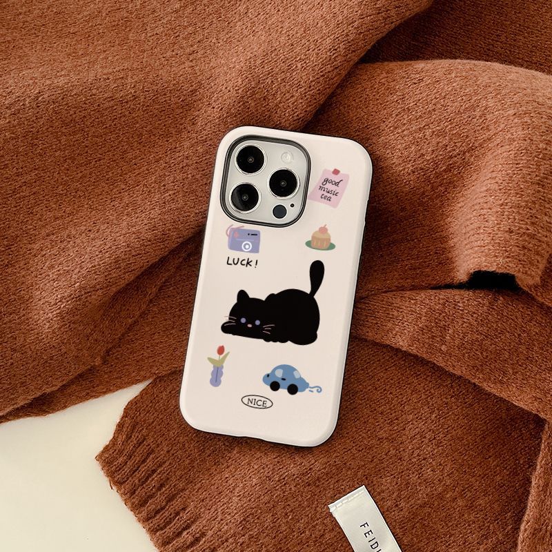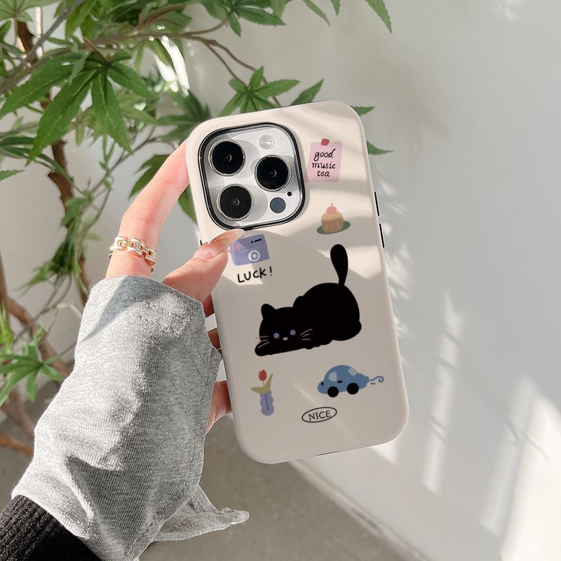 相机黑猫手机壳适用适用苹果16promax二合一iPhone15菲林壳14大孔