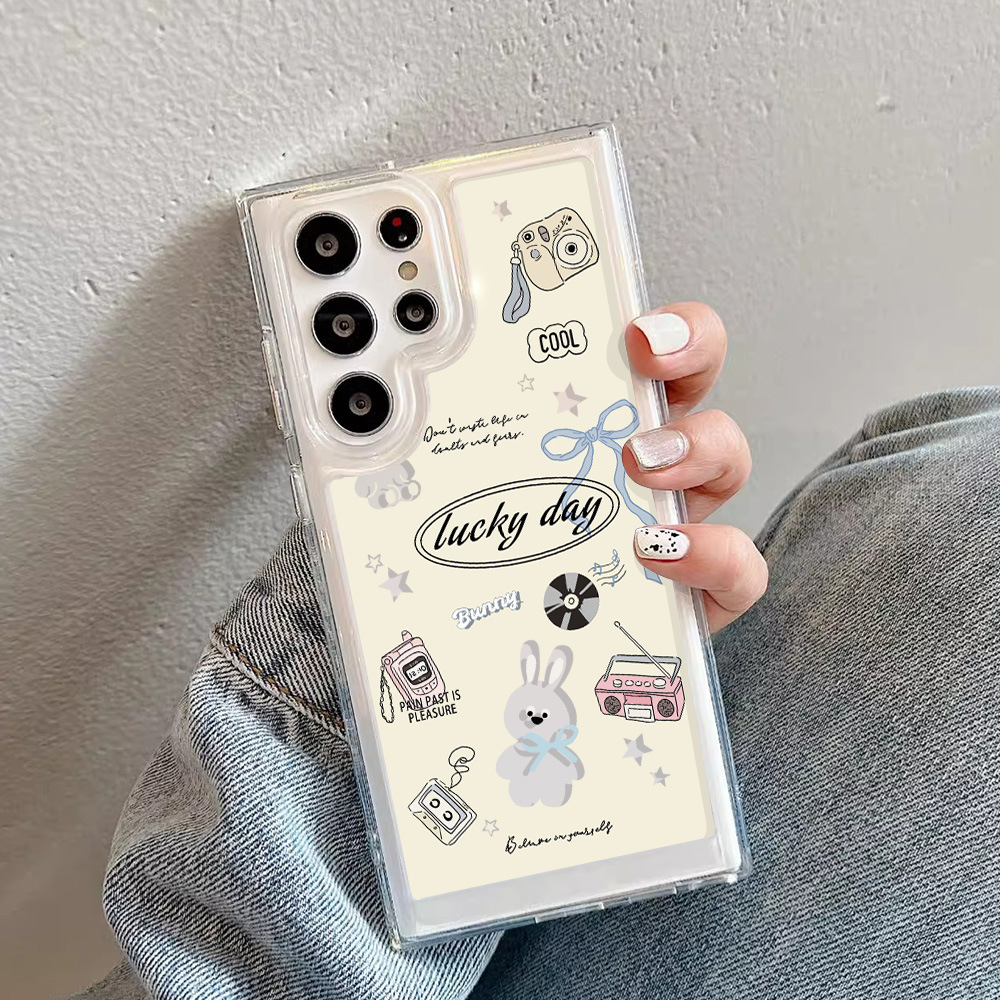 可爱涂鸦兔子S24Plus手机壳防震S22Ultra卡通A12/M12透明S21FE女