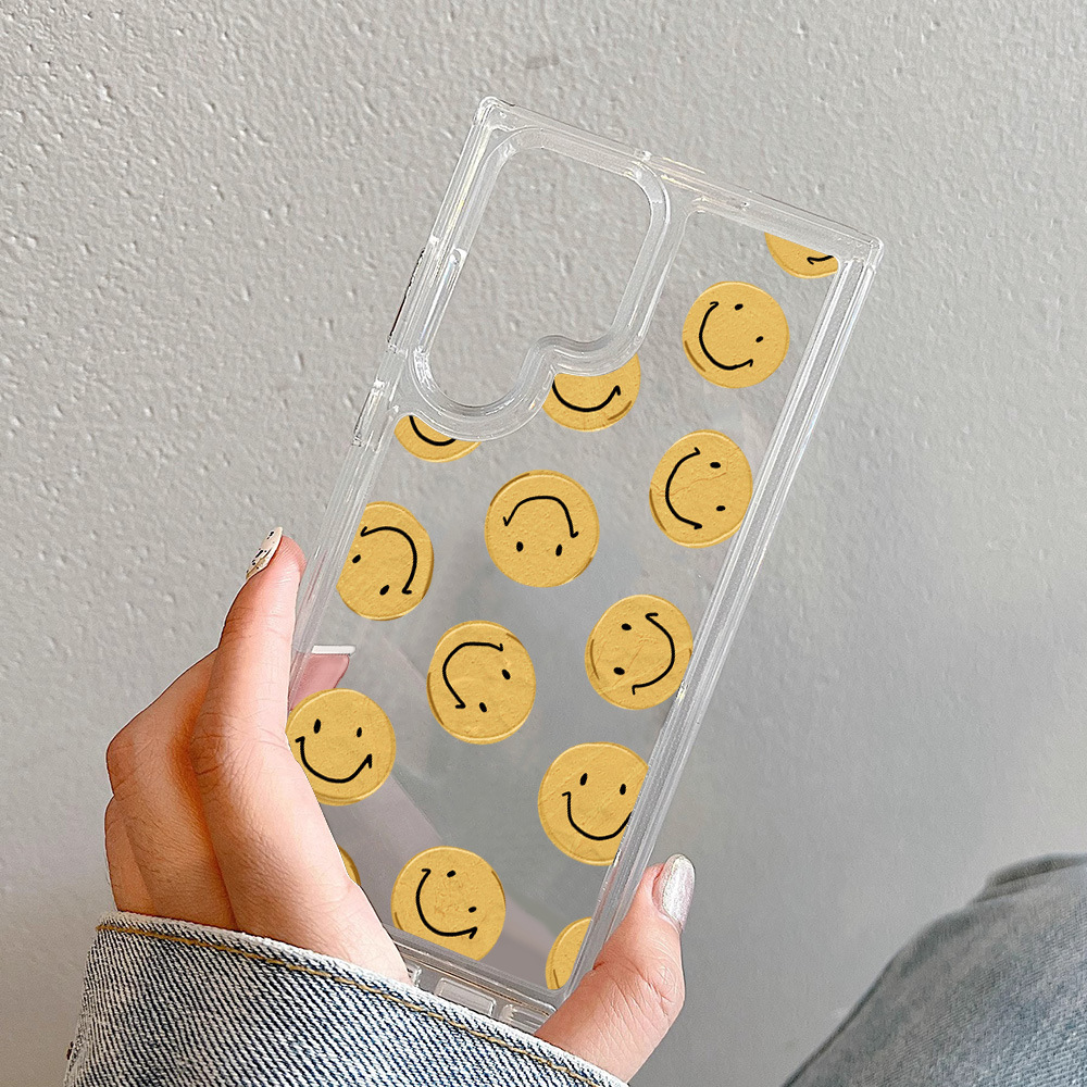 可爱透明满屏笑脸S24Plus手机壳S24Ultra卡通S22防震S21FE个性A13