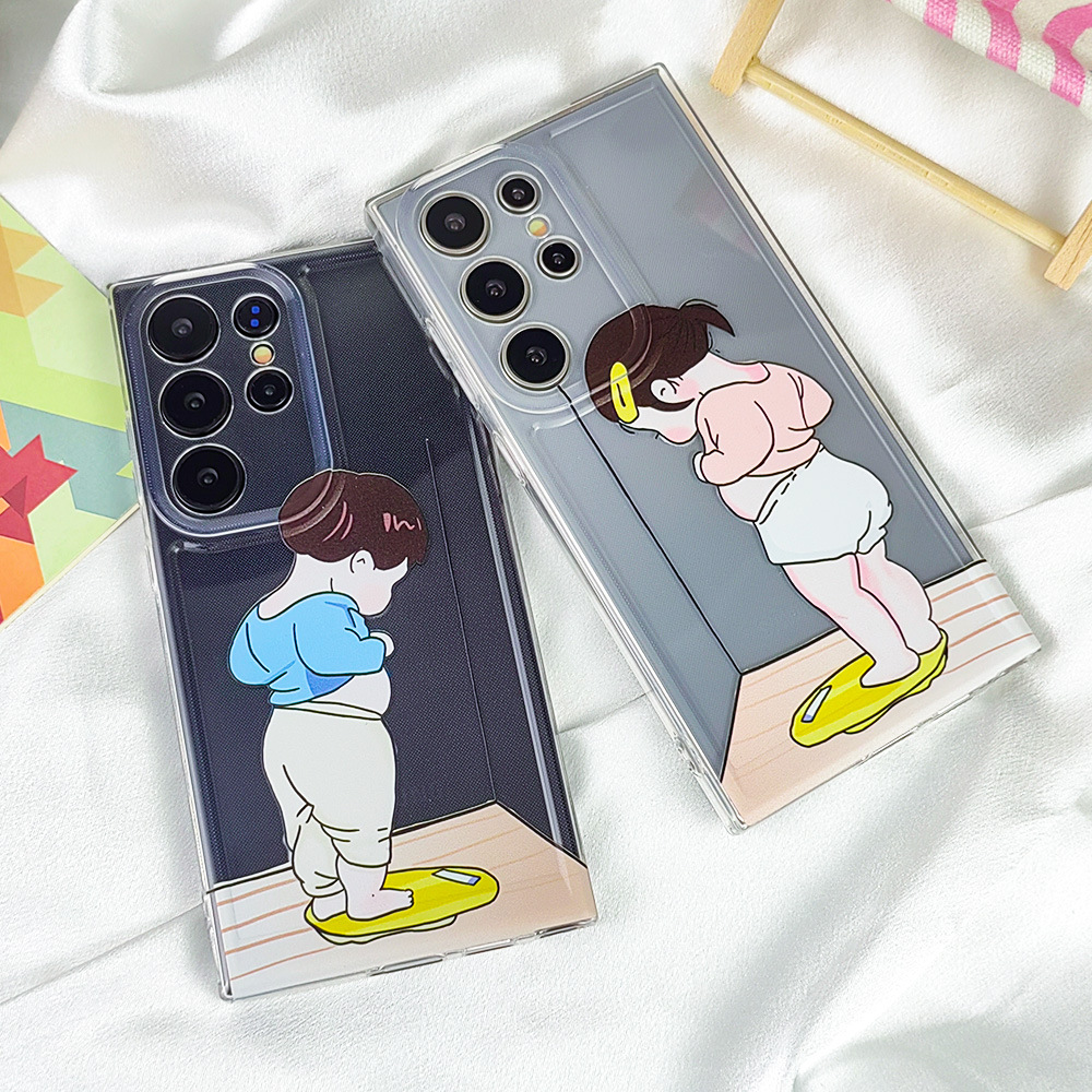 INS卡通可爱男女孩S24Ultra手机壳S23FE防震S24Plus情侣款S23创意