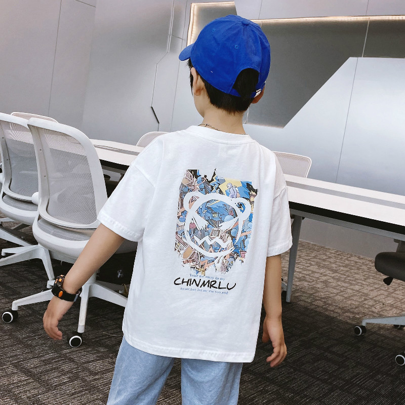 中大童卡通熊夏季纯棉男童短袖t恤夏装儿童潮牌半袖韩版上衣跨境