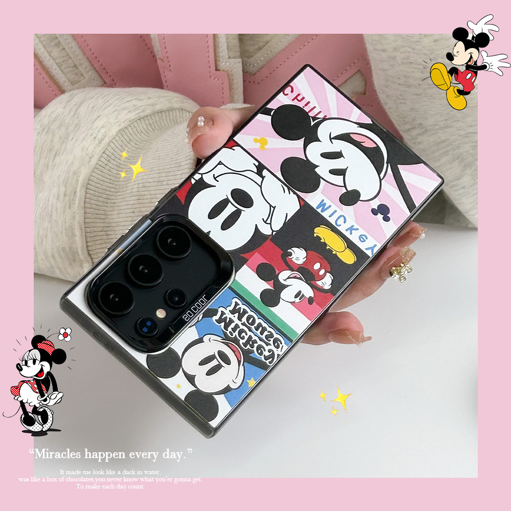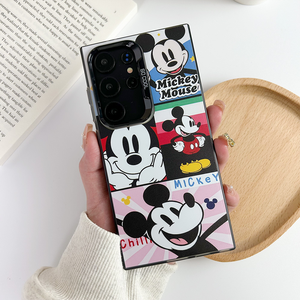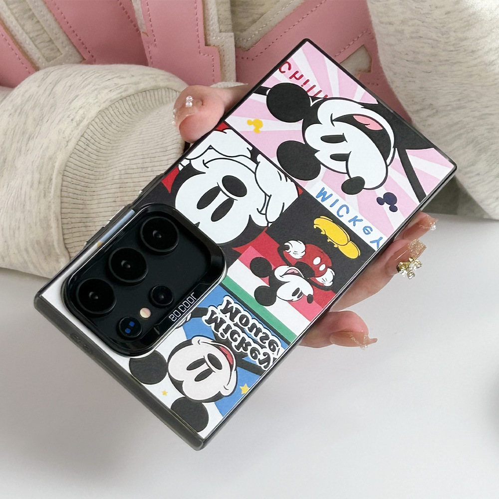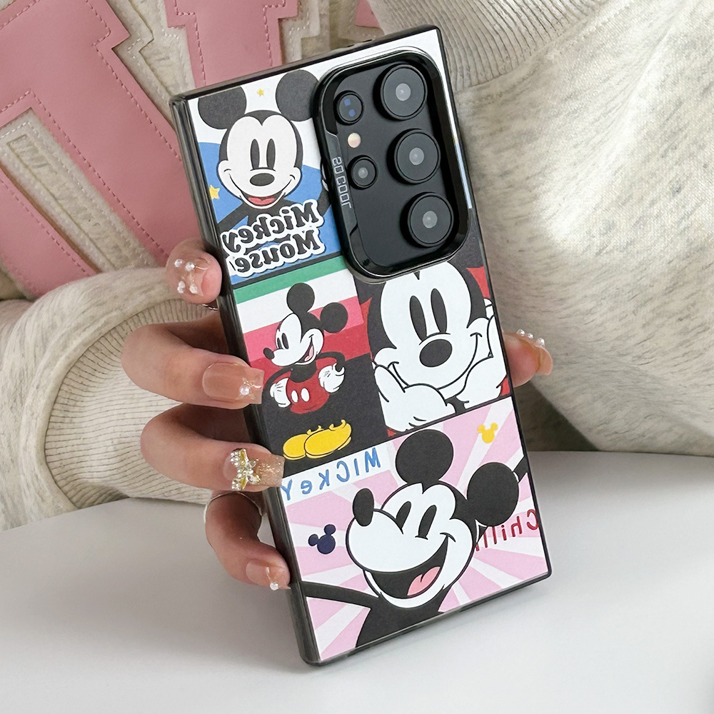 卡通米奇格子插画S24Ultra手机壳S21FE新款S24Plus可爱S24防震S22