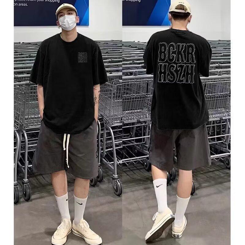 美式复古情侣短袖t恤男生夏季新款宽松黑色设计感小众ins潮上衣服