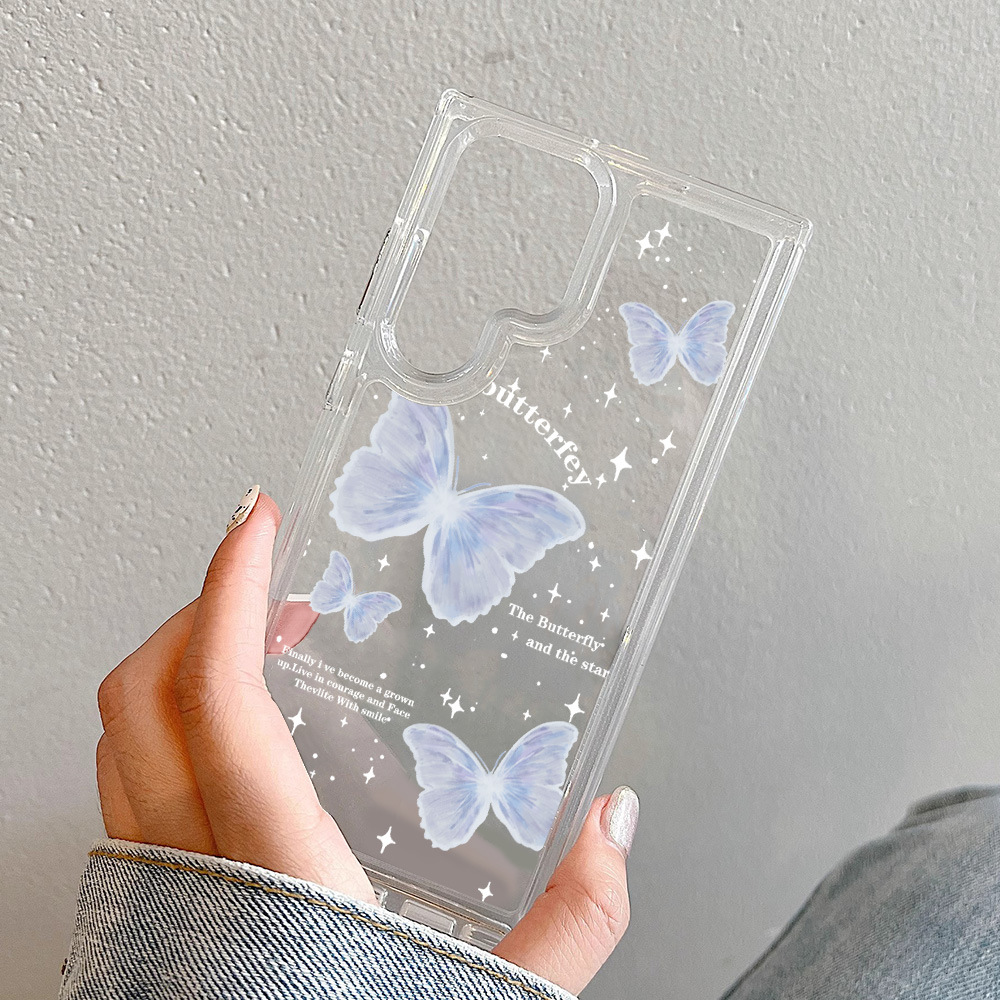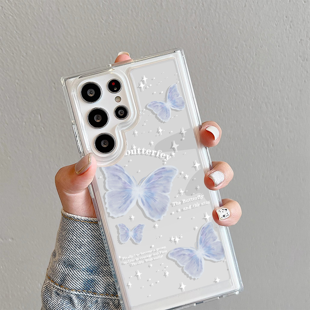 梦幻蓝色蝴蝶S24Ultra手机壳S21FE新款S24Plusins风S24软透明壳