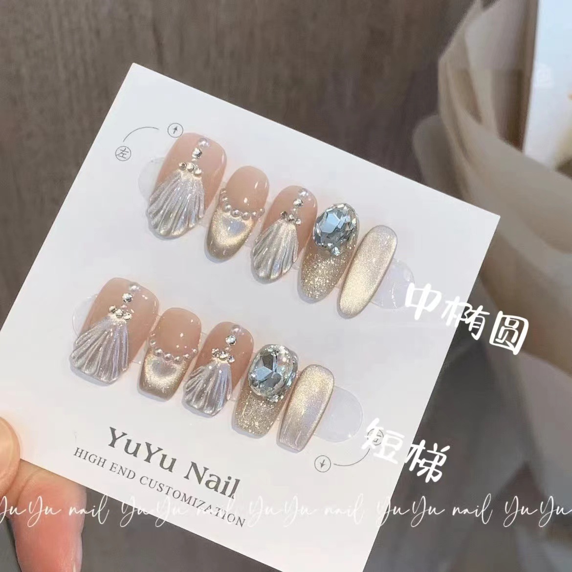 纯手工光疗穿戴甲橘裙摆穿戴甲批发成品重复使用美甲贴片可拆卸