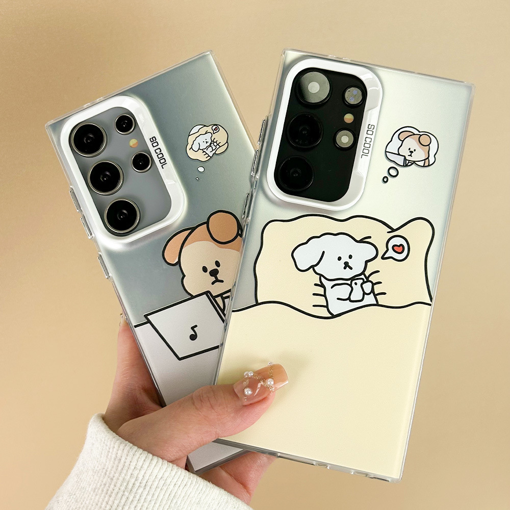 卡通情侣小狗小猫S24Ultra手机壳防震S24Plus可爱S23FE透明S23女