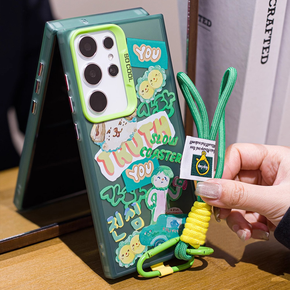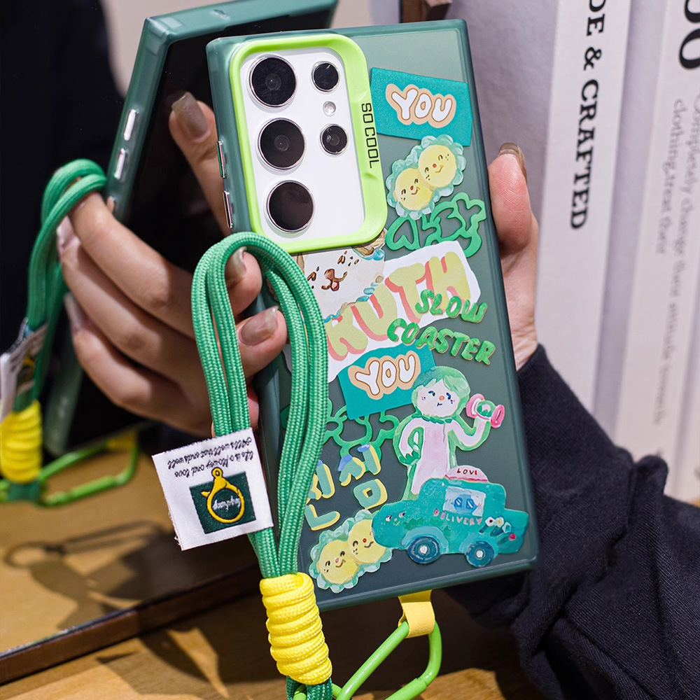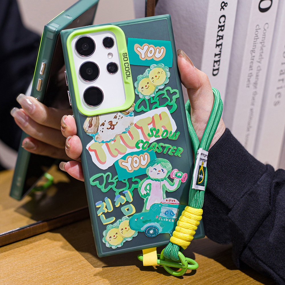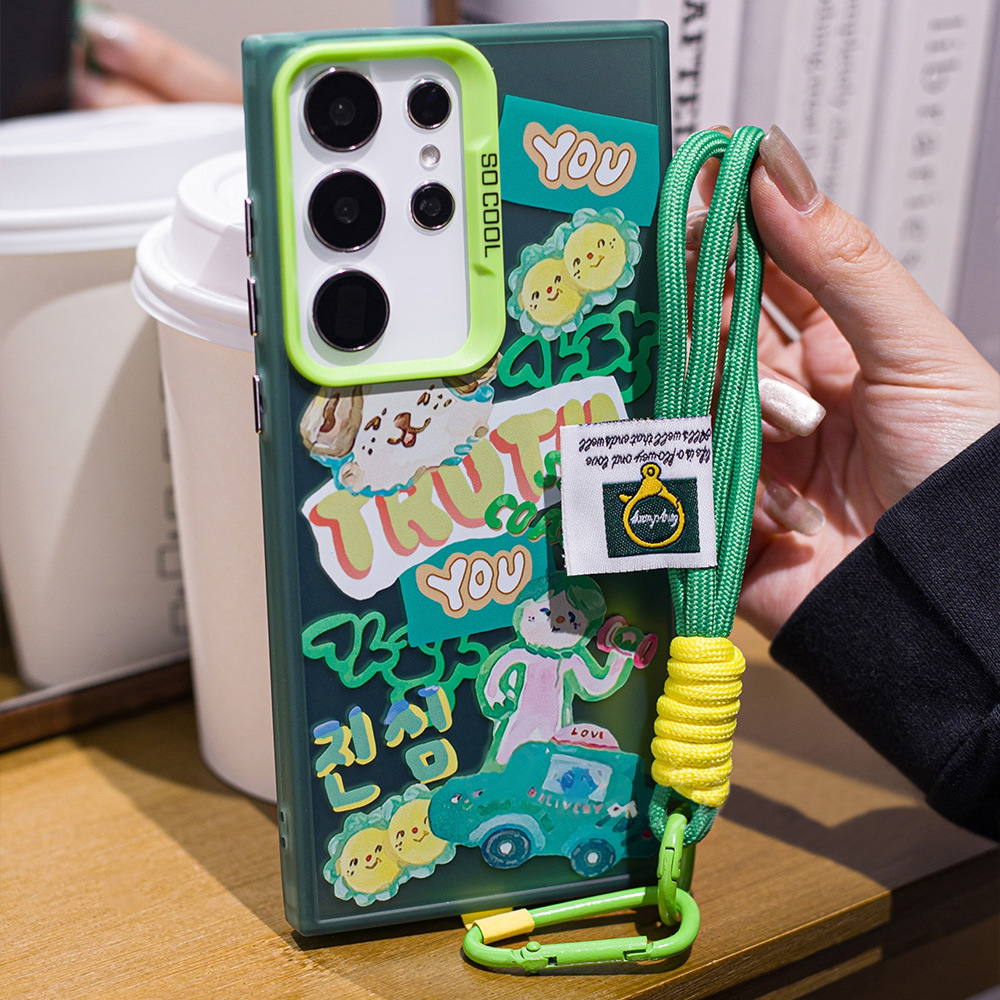 卡通涂鸦哑铃公仔带挂绳S24Plus手机壳S21FE新款S24 Ultra可爱S21