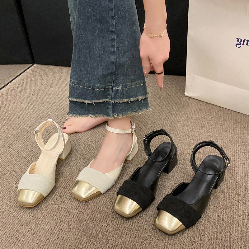 包头凉鞋女2025夏季新款英伦风时尚粗跟一字扣带高跟凉鞋潮搭女鞋