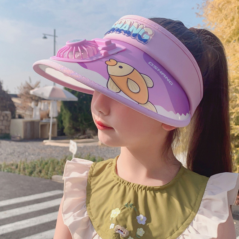 儿童风扇帽子女童遮阳帽夏季大帽檐户外女孩防晒帽女宝宝太阳帽男