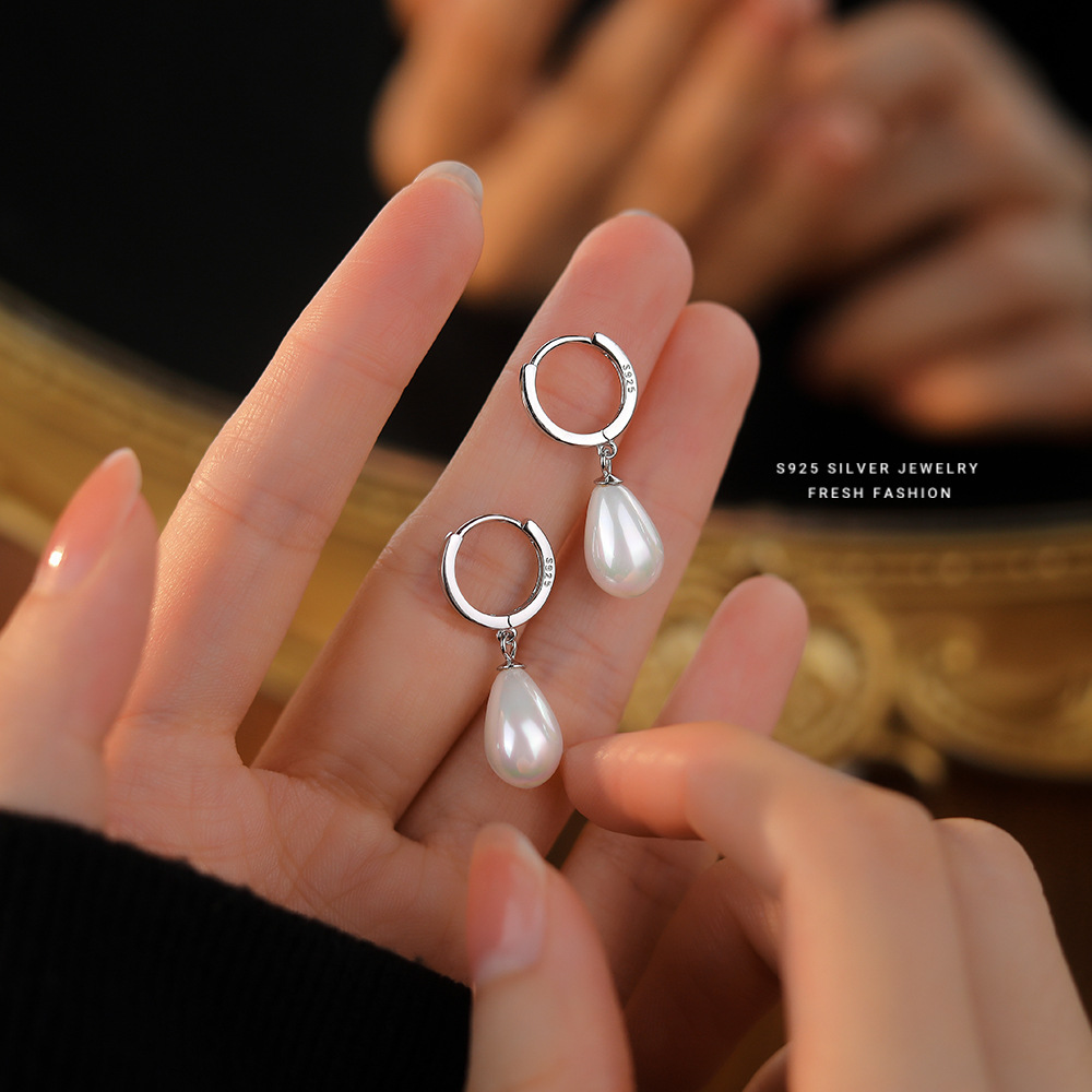 s925纯银复古气质水滴贝珠耳环女法式轻奢高级感小众设计感耳饰