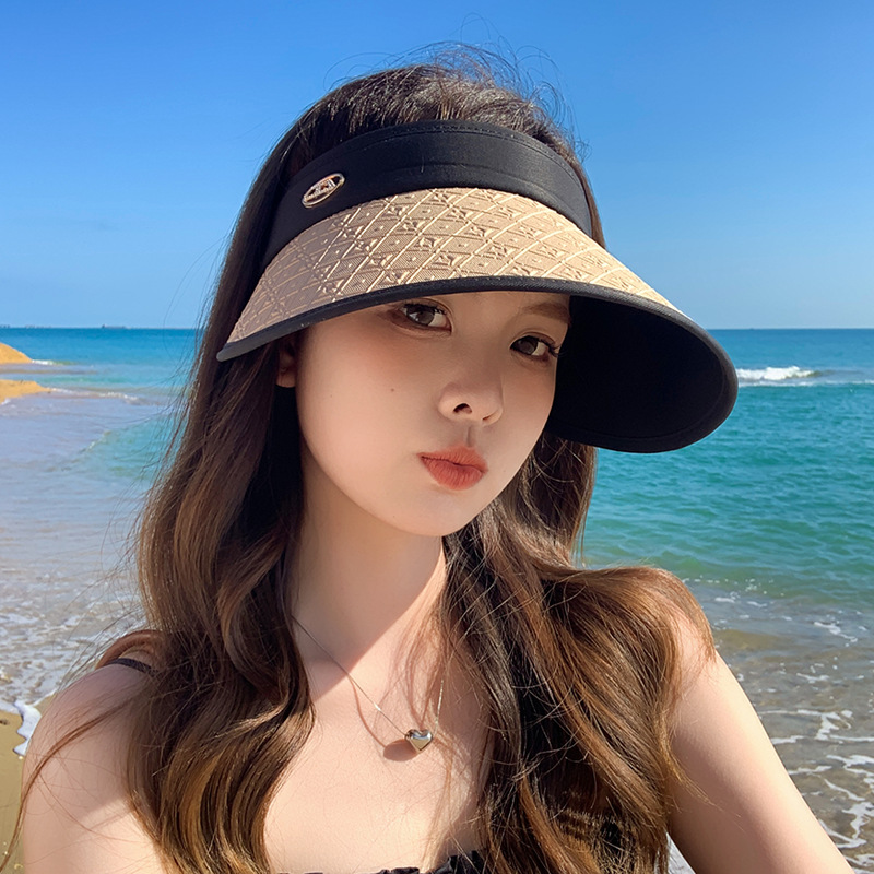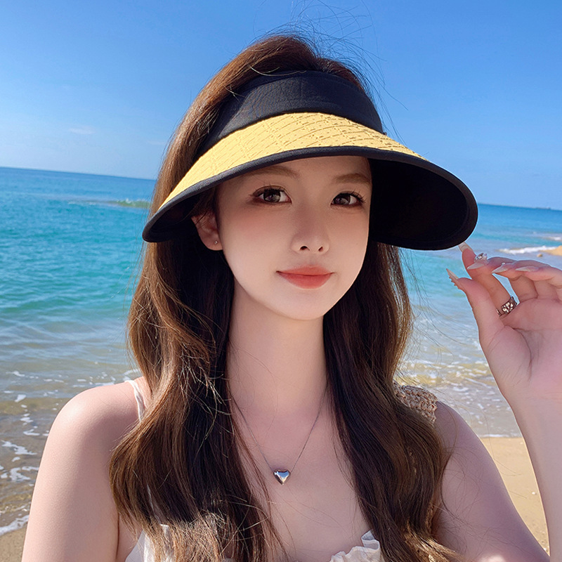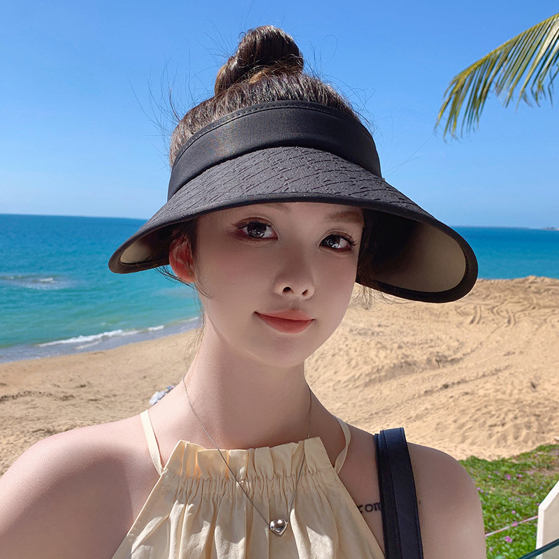 黑胶空顶防晒帽子女夏季大帽檐遮脸防紫外线海边遮阳帽草编太阳帽