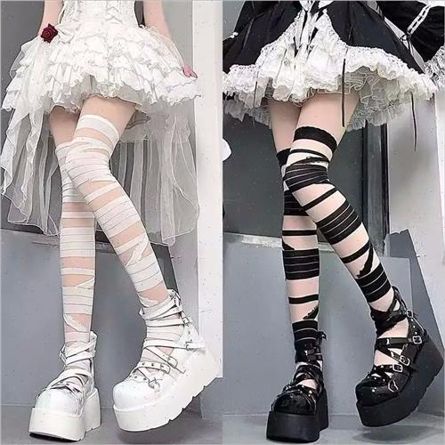新款绑带过膝袜丝袜Lolita交叉不规则长筒过膝丝袜JK女孩长袜