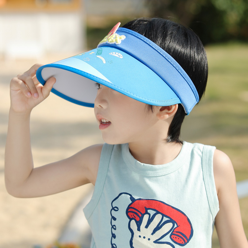 防晒帽儿童夏季防紫外线沙滩卡通遮阳帽男女童空顶帽大帽檐太阳帽