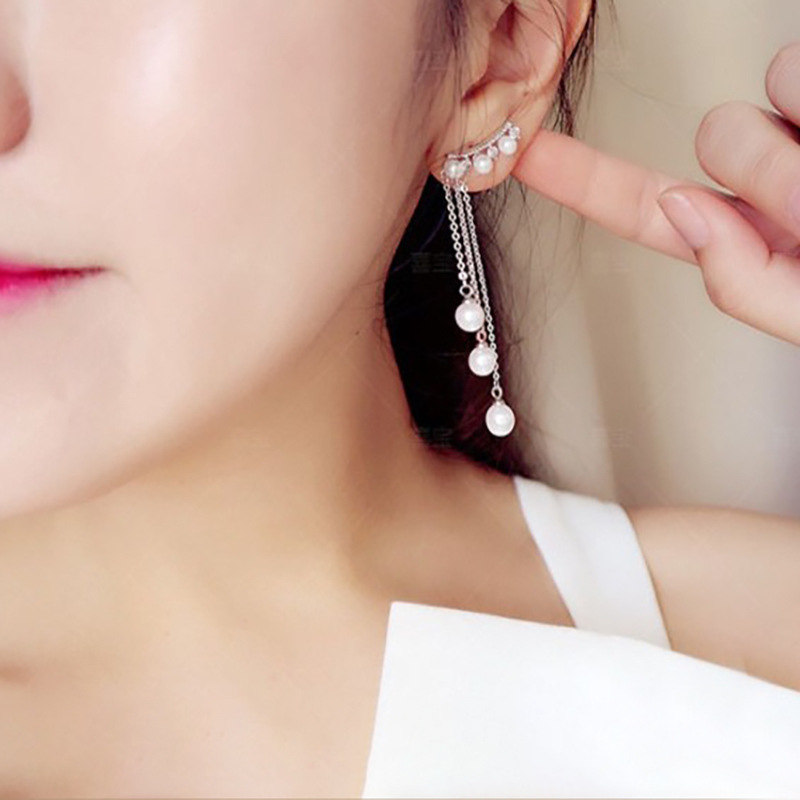 s925银针高级感气质流苏珍珠耳环长款韩国个性简约百搭耳钉耳坠女