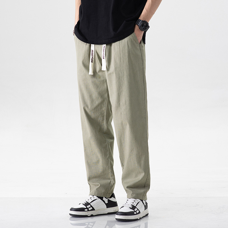 米白色裤子男宽松直筒潮流百搭夏季薄款透气休闲长裤弹力锥形大码