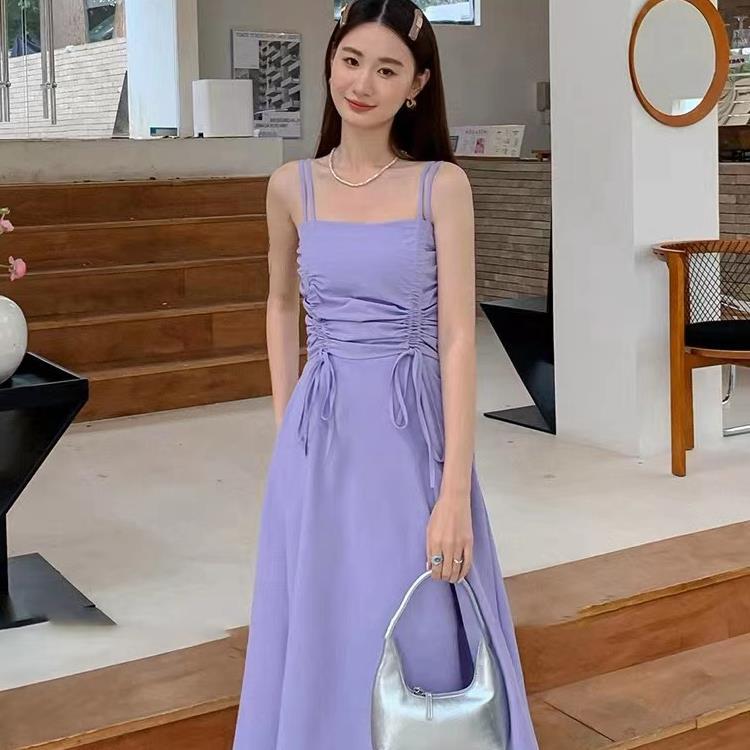 度假风吊带裙女夏季设计感小众抽绳褶皱收腰抹胸裙显瘦修身连衣裙
