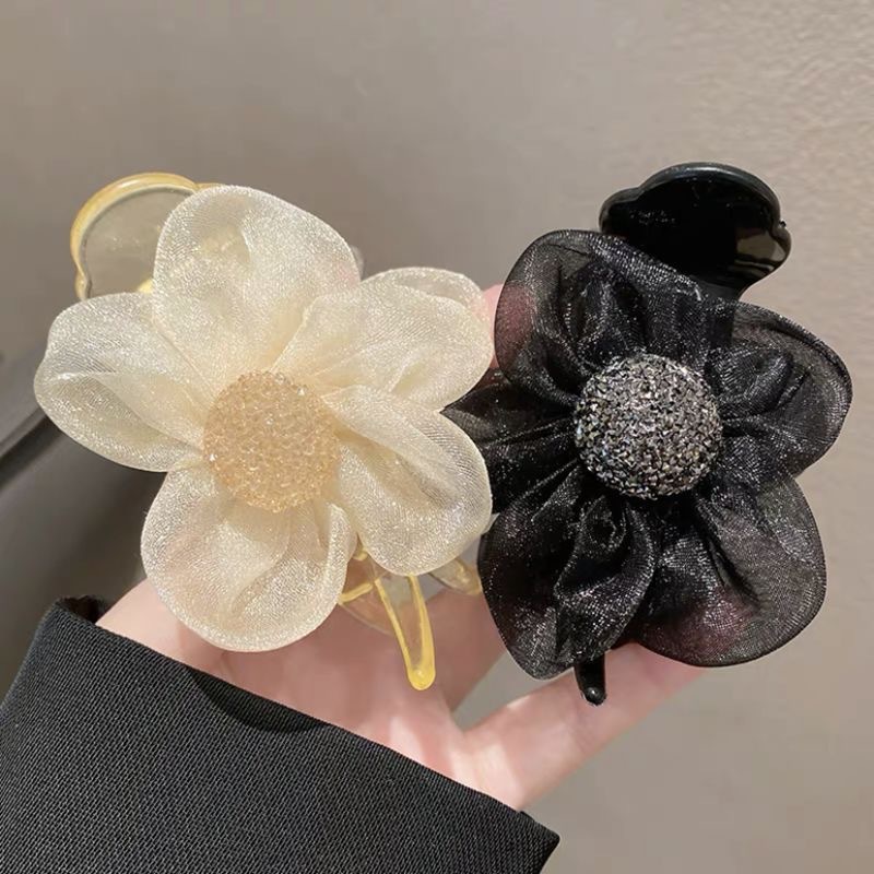 太阳花头饰蝴蝶结发夹小香风山茶花发夹发卡发饰后脑勺女网纱