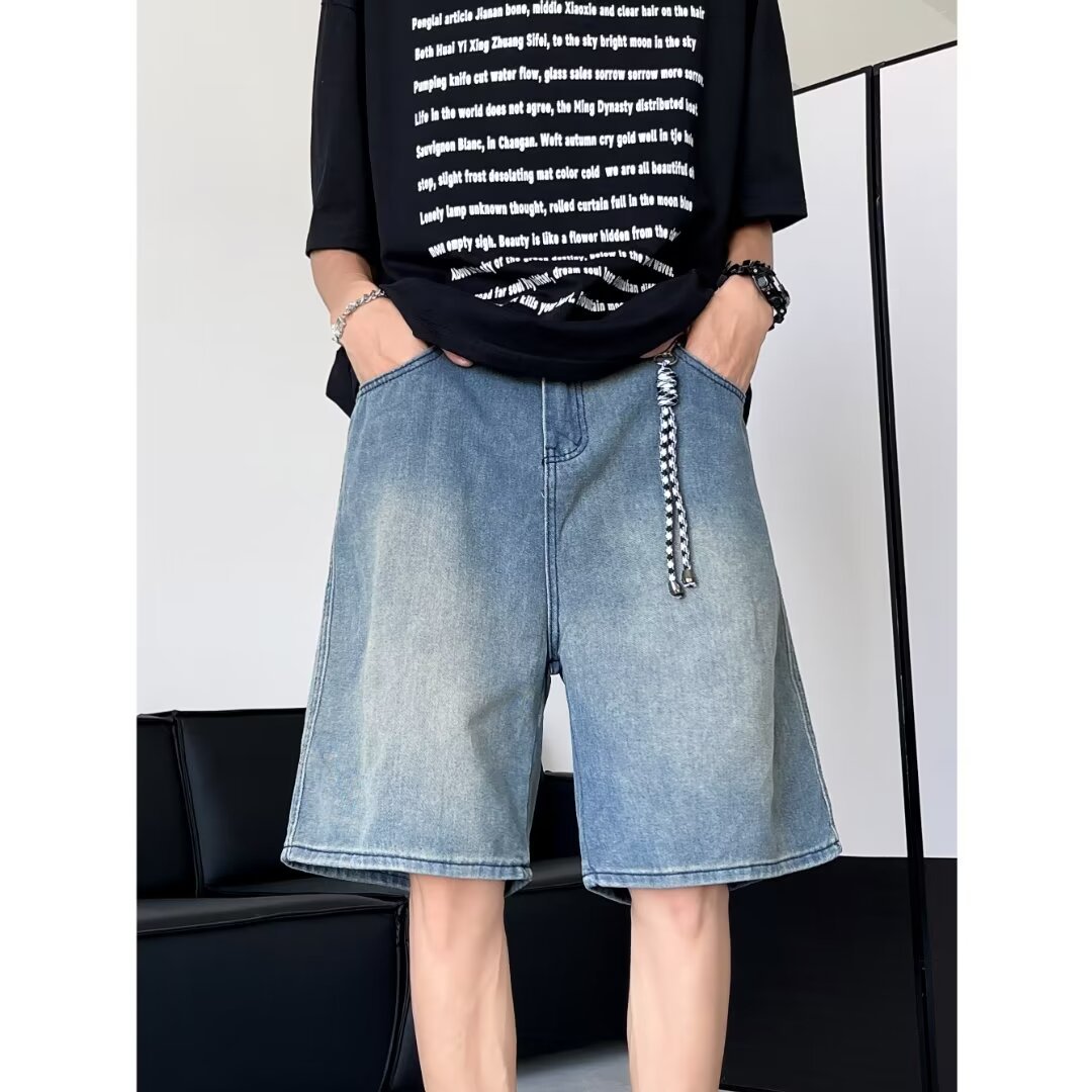 基础款牛仔短裤男夏季薄款潮牌大码中裤美式高街复古宽松5五分裤