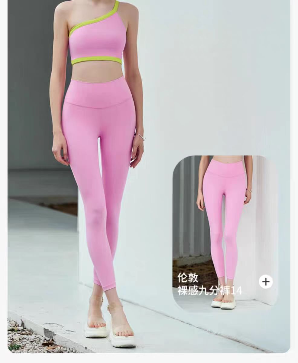 新欧美跨境时尚一字斜肩设计裸感瑜伽内衣运动健身文胸瑜伽服套装