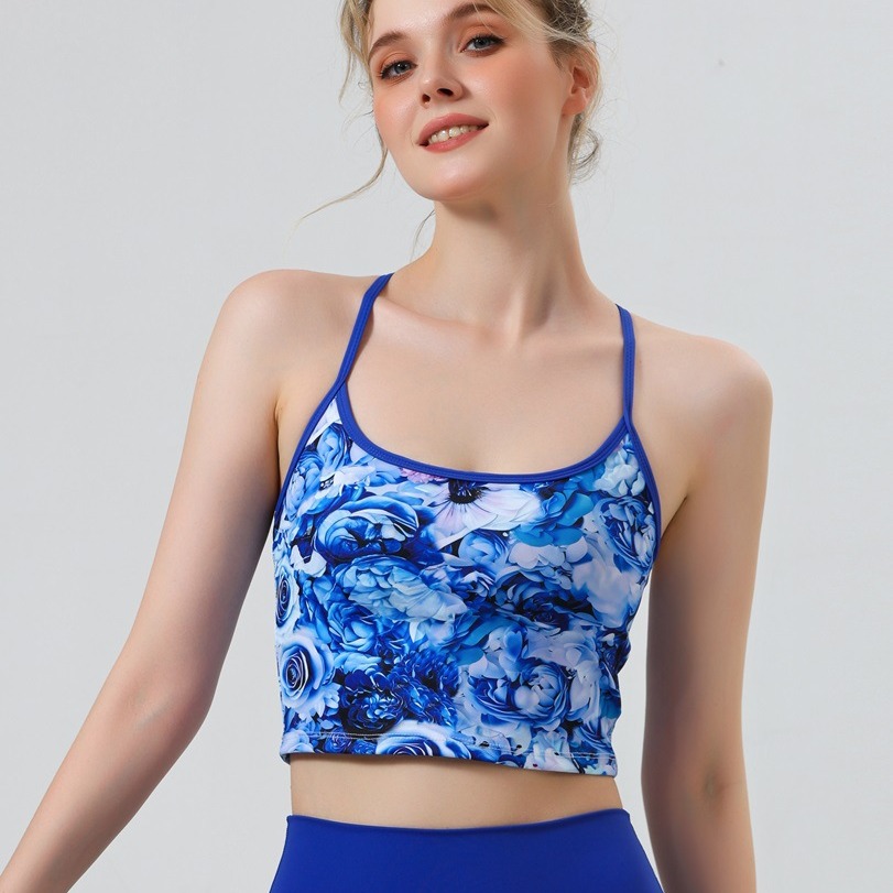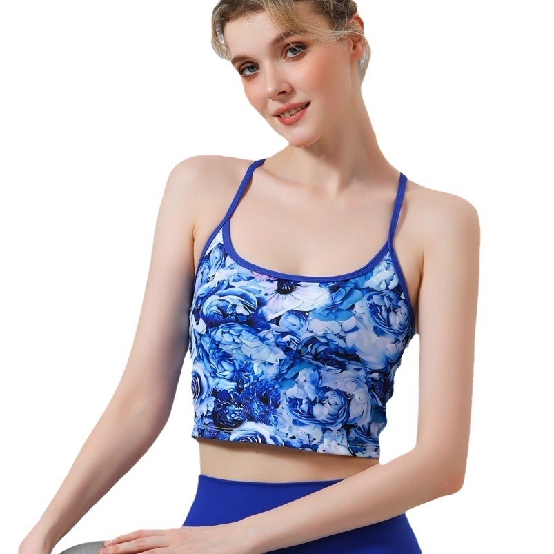 欧美印花美背心瑜伽服套装跑步健身运动文胸健身九分裤