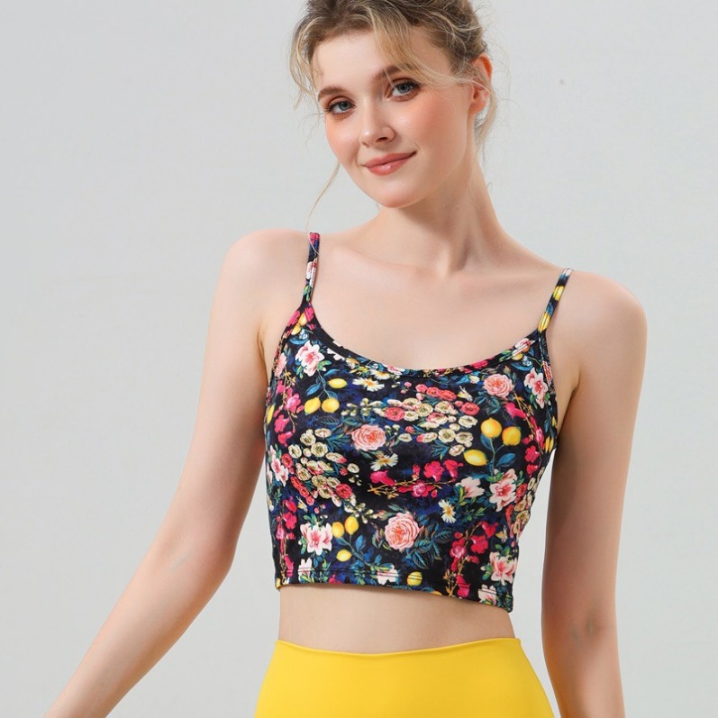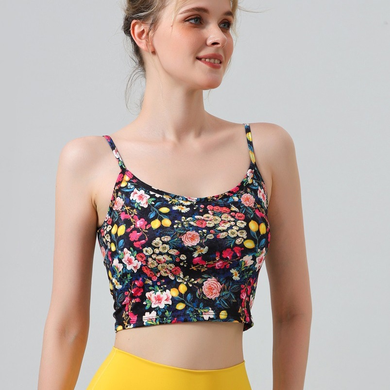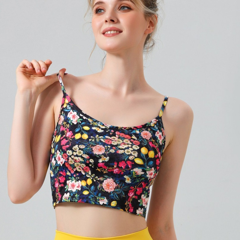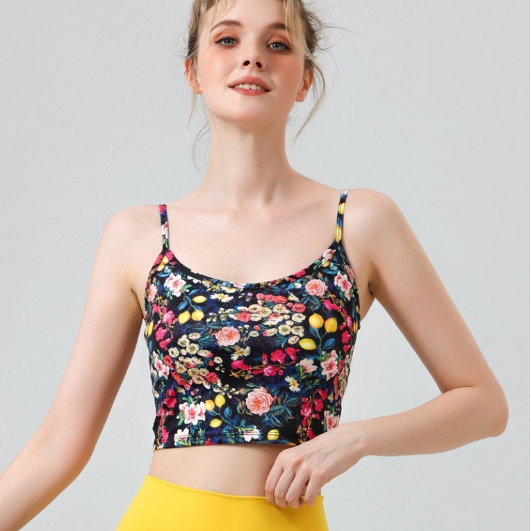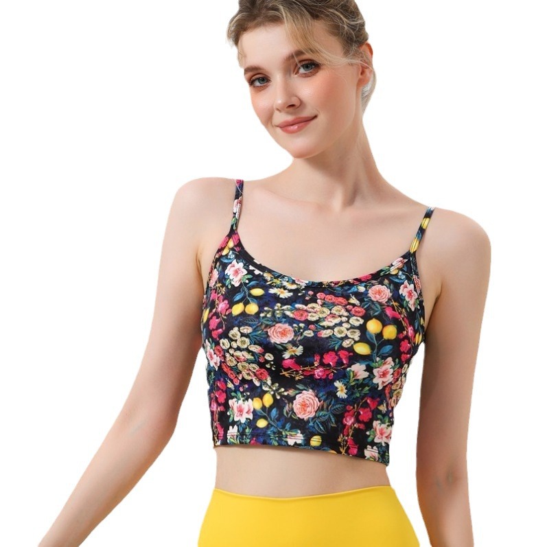 跨境外贸欧美印花美背心瑜伽服套装带胸垫时尚性感健身裤运动文胸