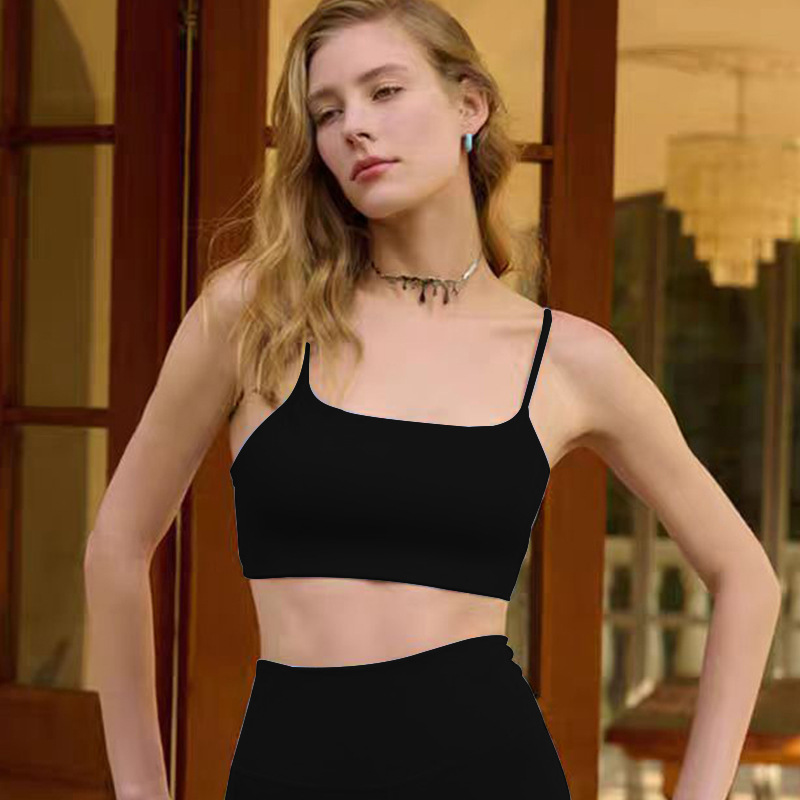 欧美跨境外贸女交叉美背裸感运动内衣健身细肩带瑜伽防震聚拢文胸