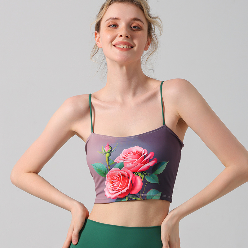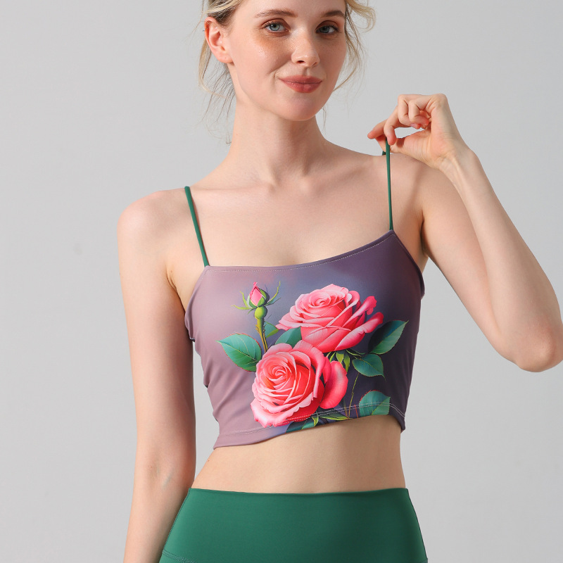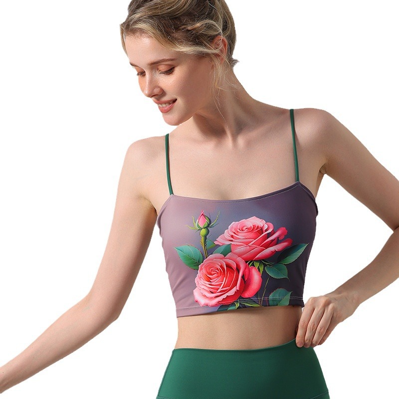 外贸跨境欧美裸感运动文胸聚拢中国风瑜伽服套装吊带印花内搭上衣