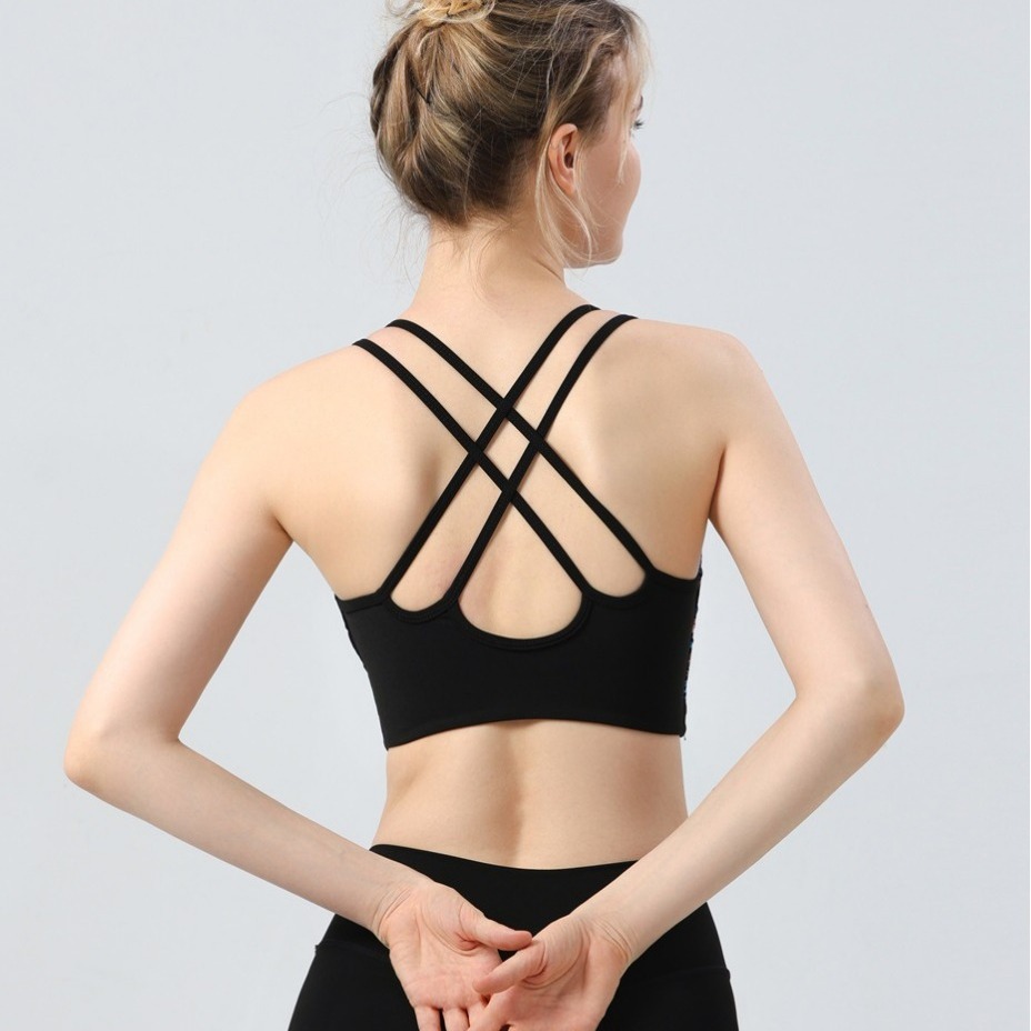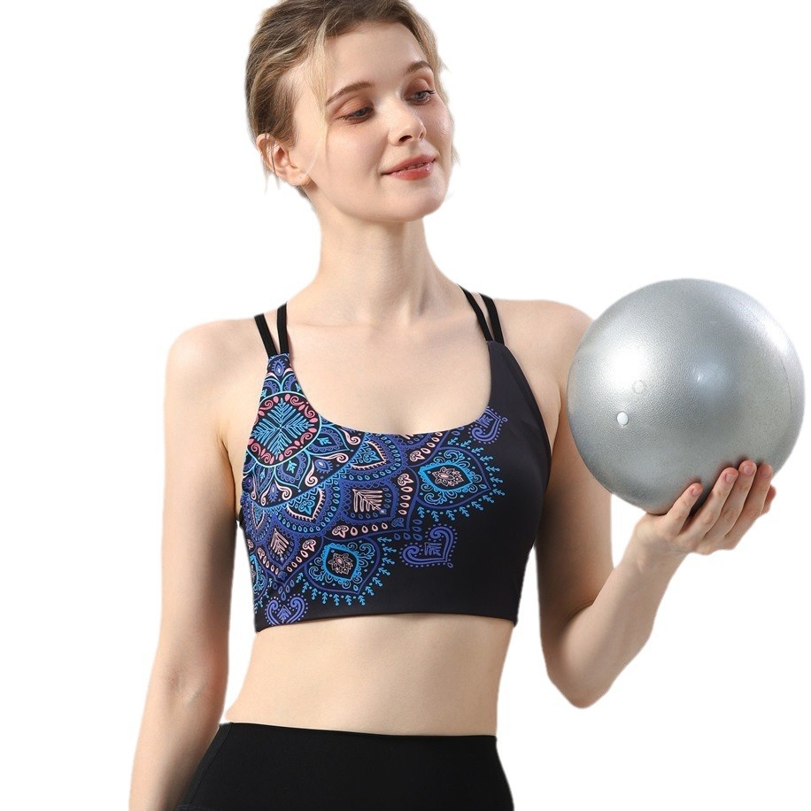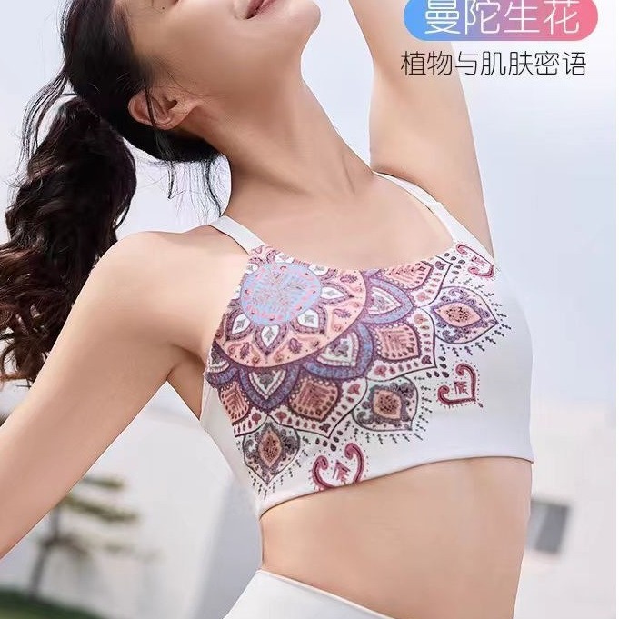 欧美外贸跨境时尚曼陀花美背心瑜伽服套装运动内衣文胸健身裤bra